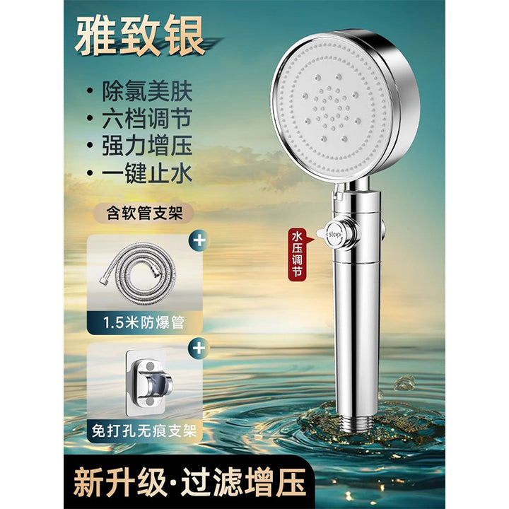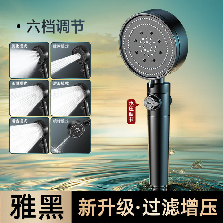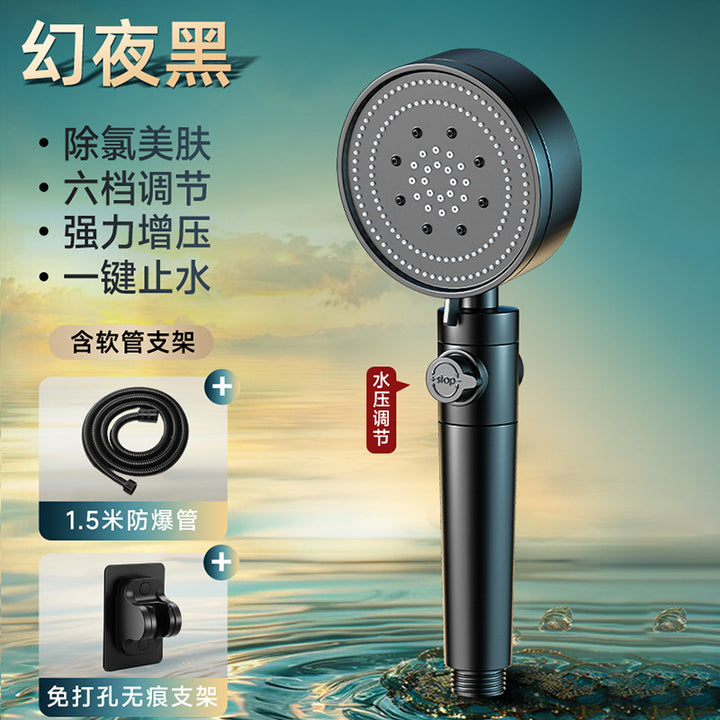 Black 6-speed supercharged shower (fifth generation ā upgraded and enhanced version), [Black - Chlorine Removal and Skin Beauty] The sixth generation ā Supercharged enhanced model, Silver 6-speed pressurized shower (fifth generation ā upgraded version), [Silver - Chlorine Removal and Skin Beauty] The sixth generation ā Supercharged enhanced model, Black pressurized shower + 1.5m hose + bracket, Black filter shower + 1.5m hose + bracket, Silver pressurized shower + 1.5m hose + bracket, Silver filter shower + 1.5m hose + bracket, Black pressurized shower + 1.5m hose |