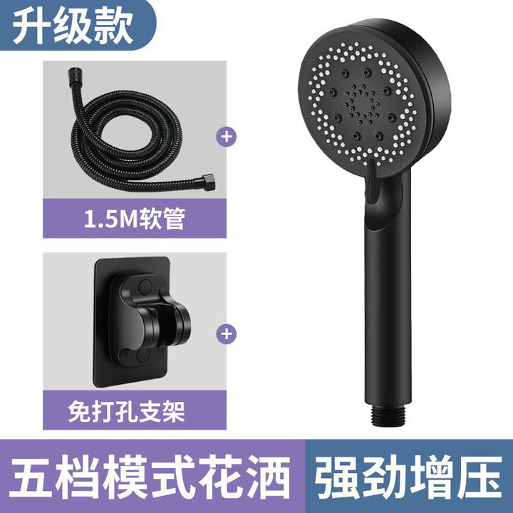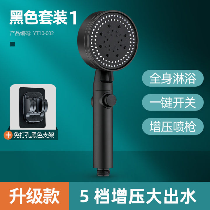 Pressurized shower showerhead set Household pressurized bath shower rain water heater black hose showerhead