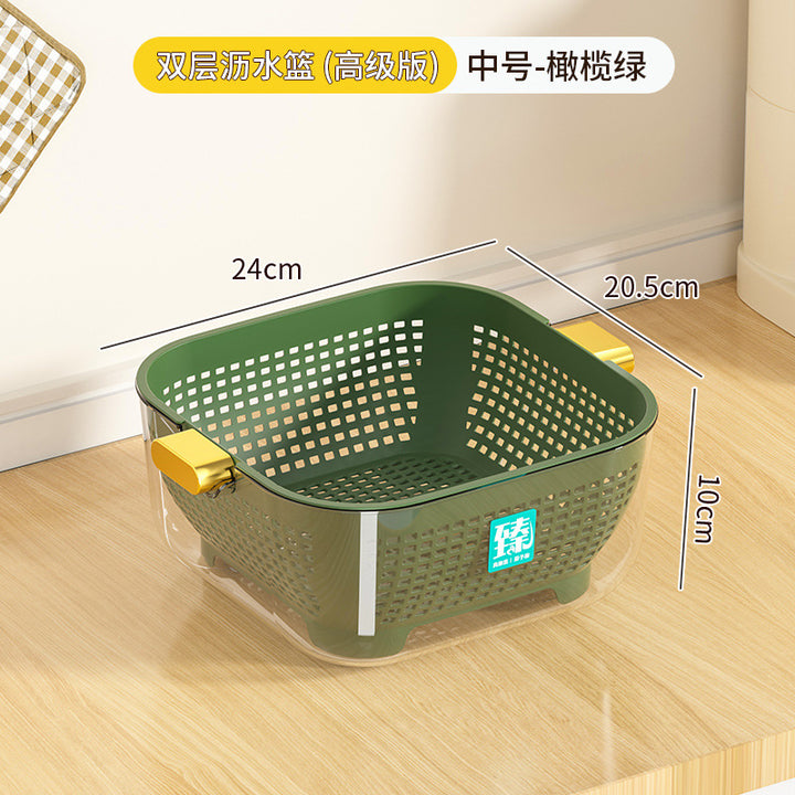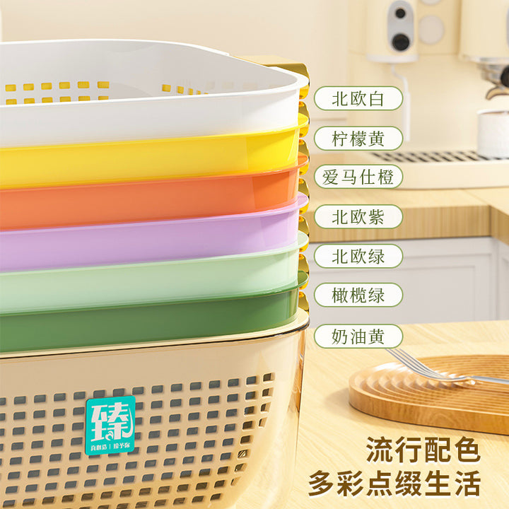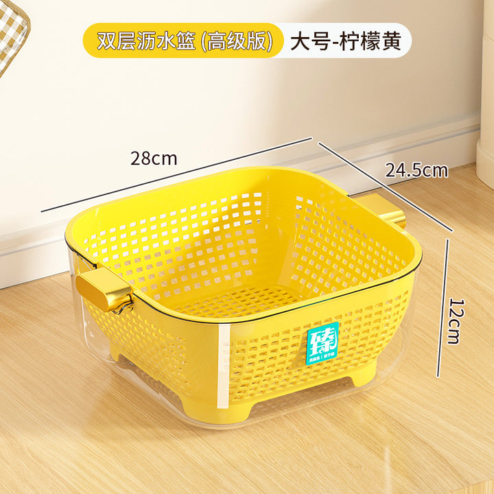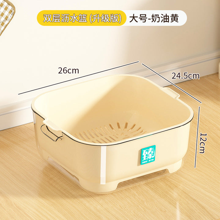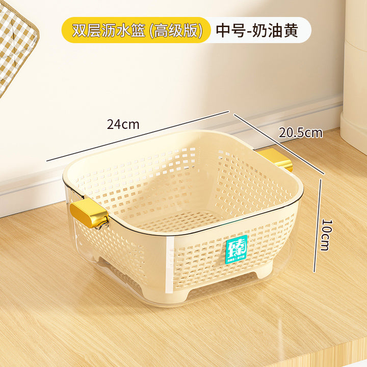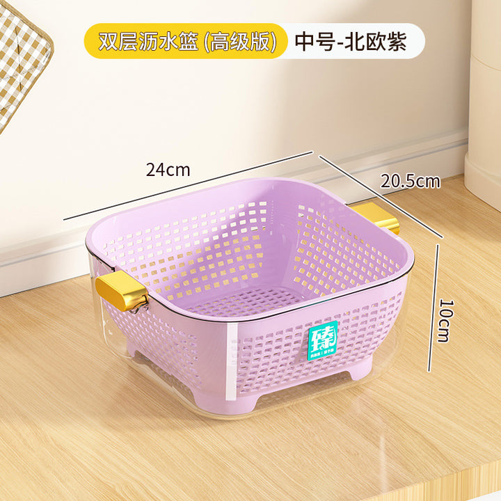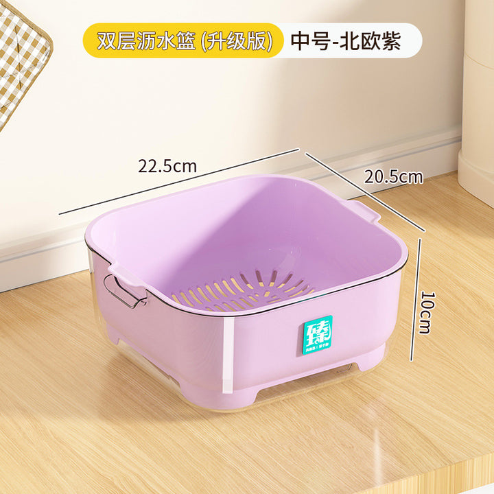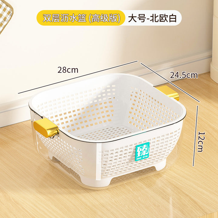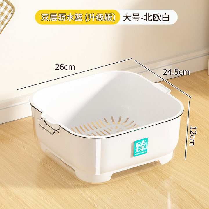 Printable labeling Internet celebrity vegetable and fruit washing basin, multi-functional double drain basin, thickened PET kitchen drain basket