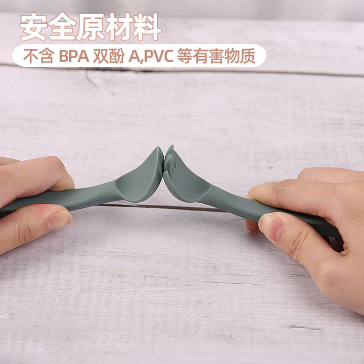 Printed logo silicone short handle fork and spoon, children's fork and spoon training spoon, children's spoon, baby learning to eat fork and spoon set