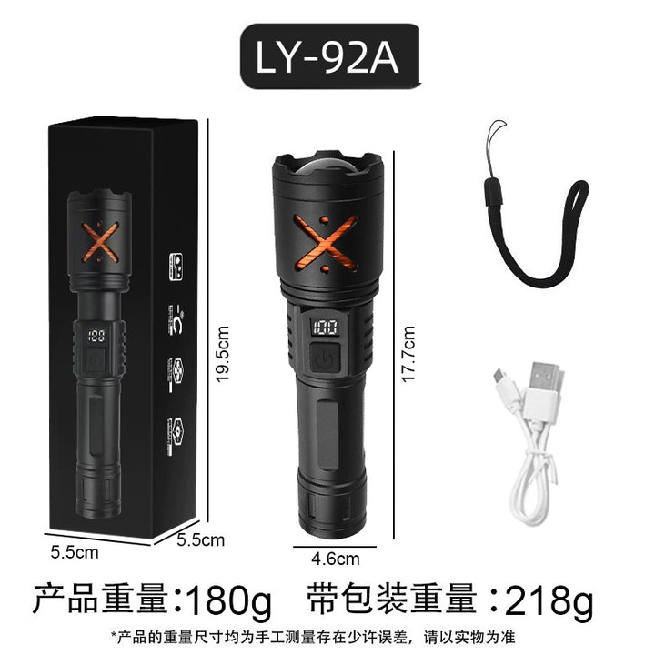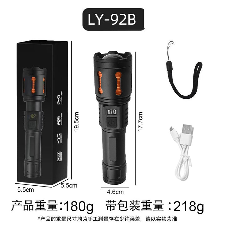 LY-92A flashlight: data cable + tail rope + flashlight + color box, LY-92B flashlight: data cable + tail rope + flashlight + color box |