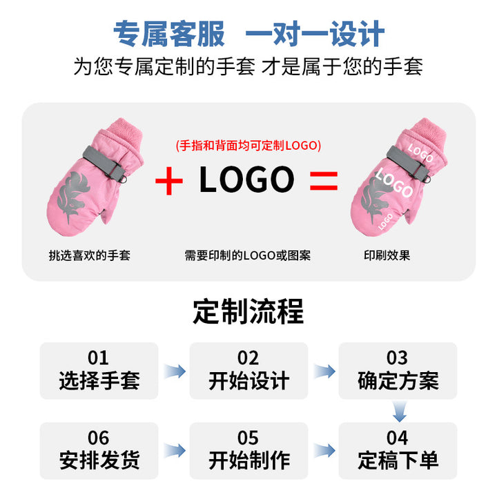 Processing custom 2025 children's gloves all-inclusive thermal outdoor ski gloves winter waterproof and windproof children's riding