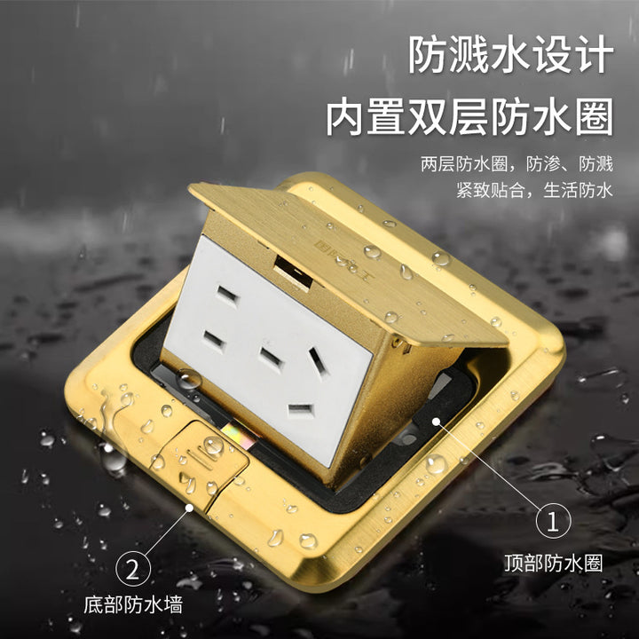 Processing custom all-copper waterproof five-hole ground plug socket invisible power supply network computer invisible ground socket