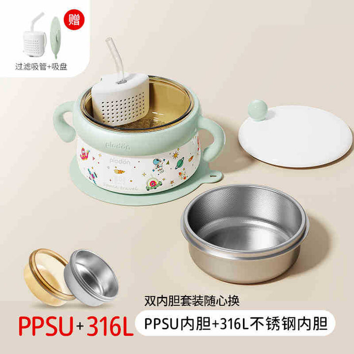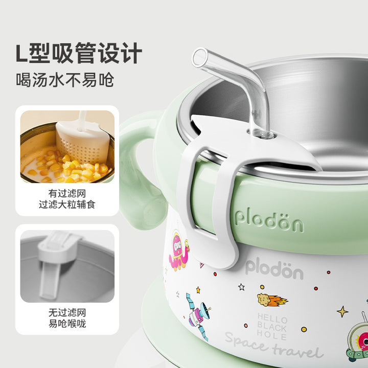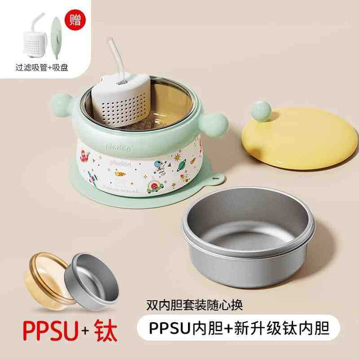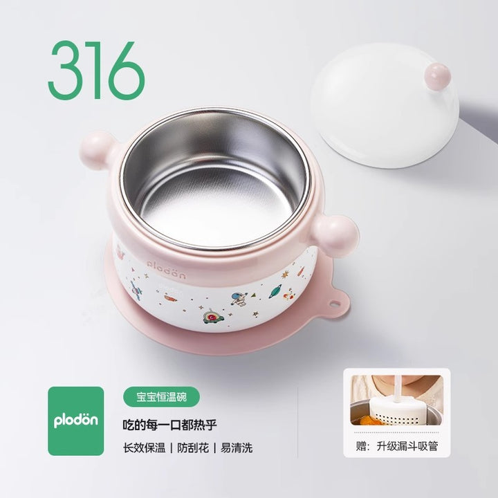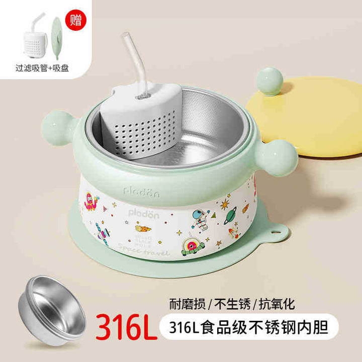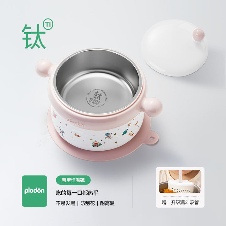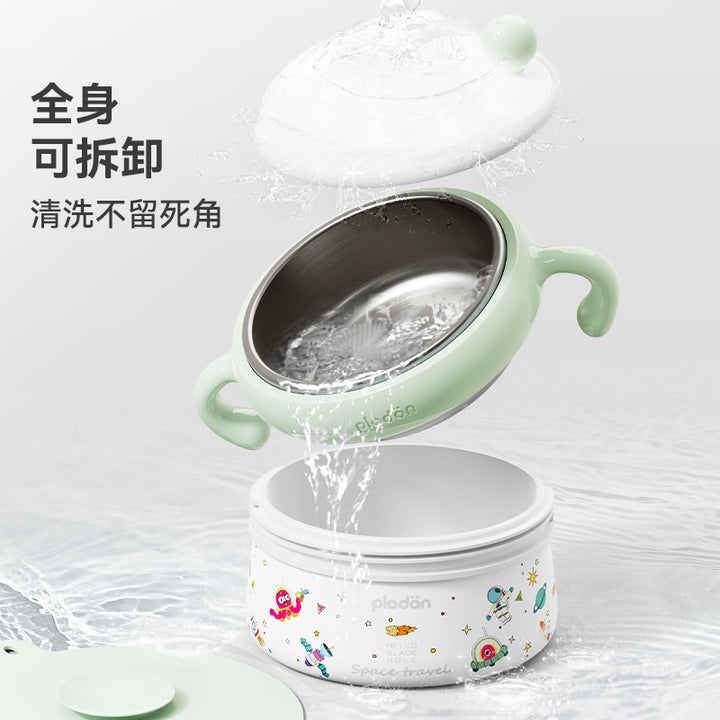 Pryton Infant Water Filling Insulation Bowl Baby Supplementary Food Bowl Special Stainless Steel Constant Temperature Bowl Children's Tableware Set