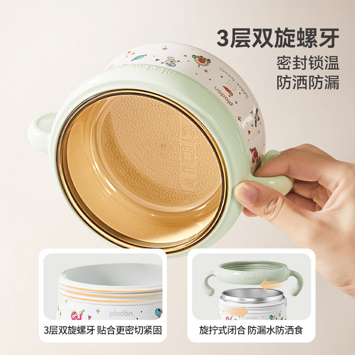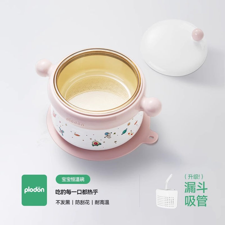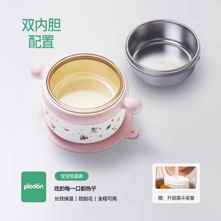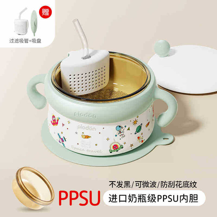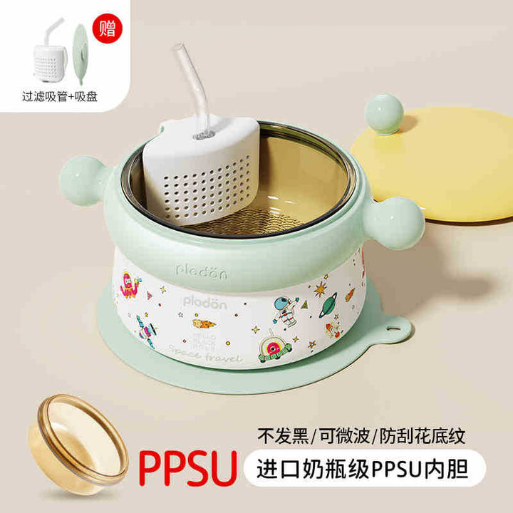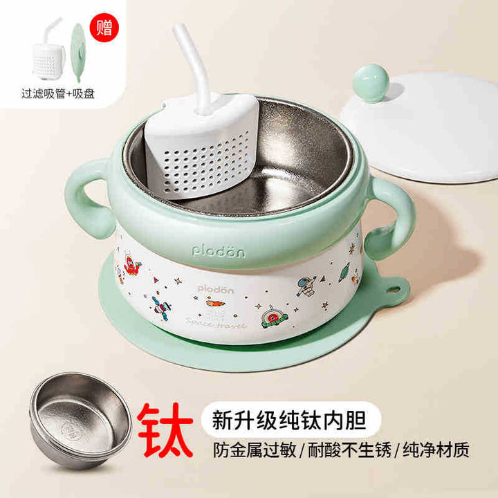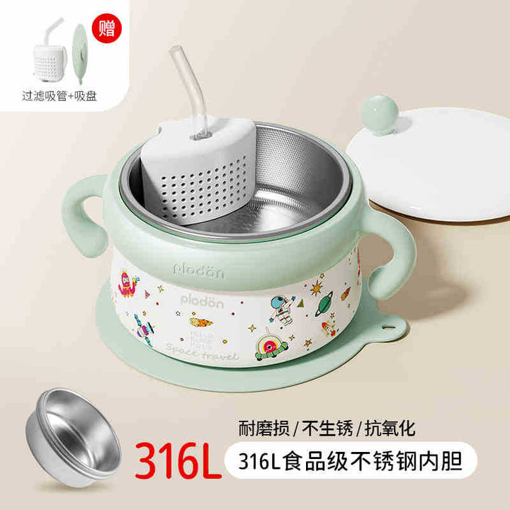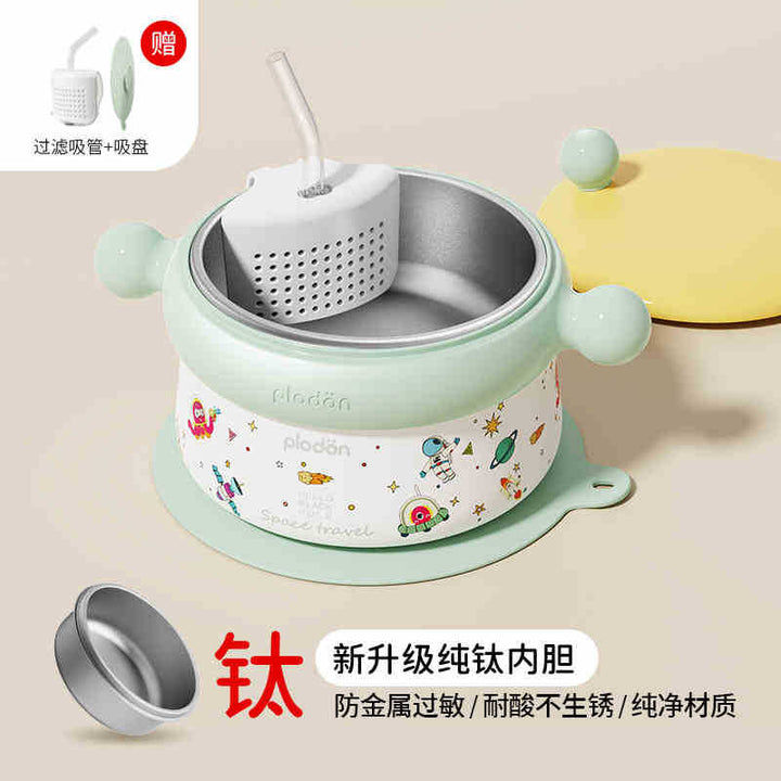 Pryton Infant Water Filling Insulation Bowl Baby Supplementary Food Bowl Special Stainless Steel Constant Temperature Bowl Children's Tableware Set