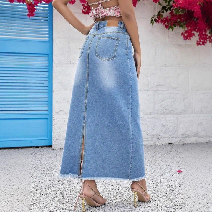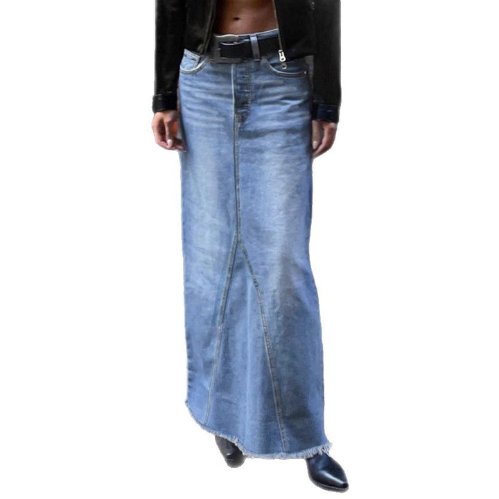 PTC70245 #European and American Women's Open Seam Straight Skirt Medium and Long Skirt Denim Skirt