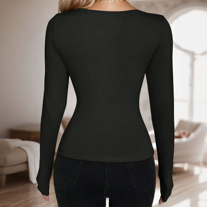 Pure desire low neck large neckline lace-up long-sleeved cardigan T-shirt women's autumn and winter chic sweet and spicy slim-fitting short top