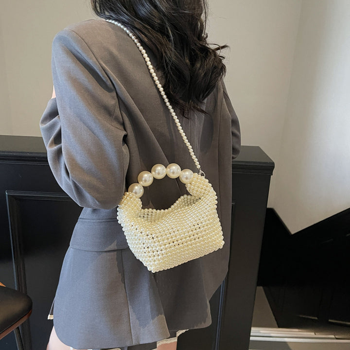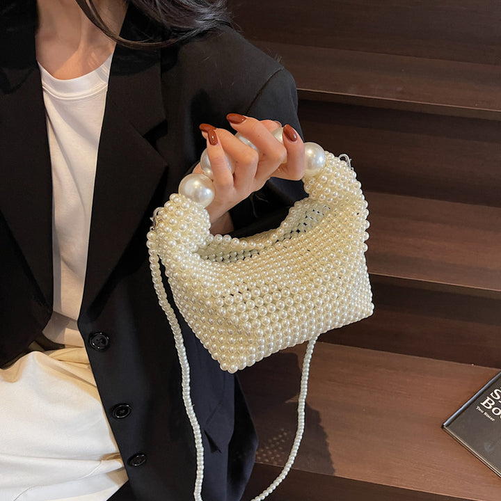 Pure hand-woven dinner bag female French retro fairy pearl bag trendy Internet celebrity large capacity portable shoulder bag