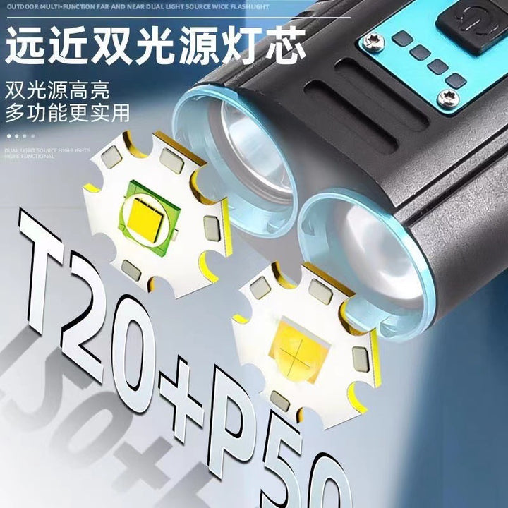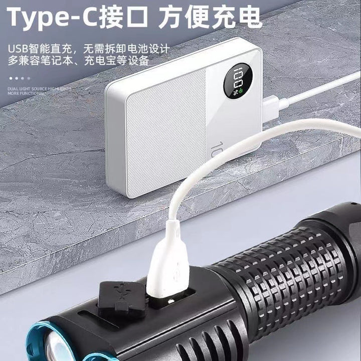 Purple light ultraviolet flashlight dual light source high power black mirror 365nm tobacco a...