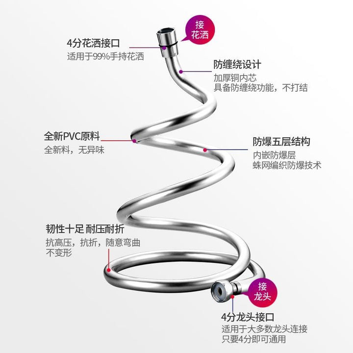 PVC shower hose Thickened explosion-proof outlet pipe Household PVC shower pipe Water heater Stainless steel shower pipe