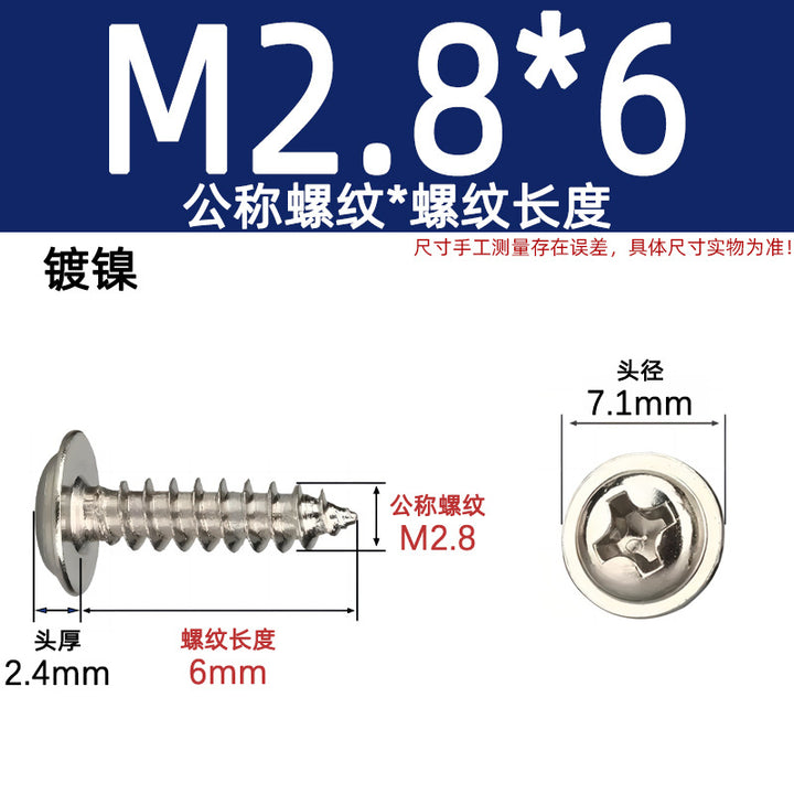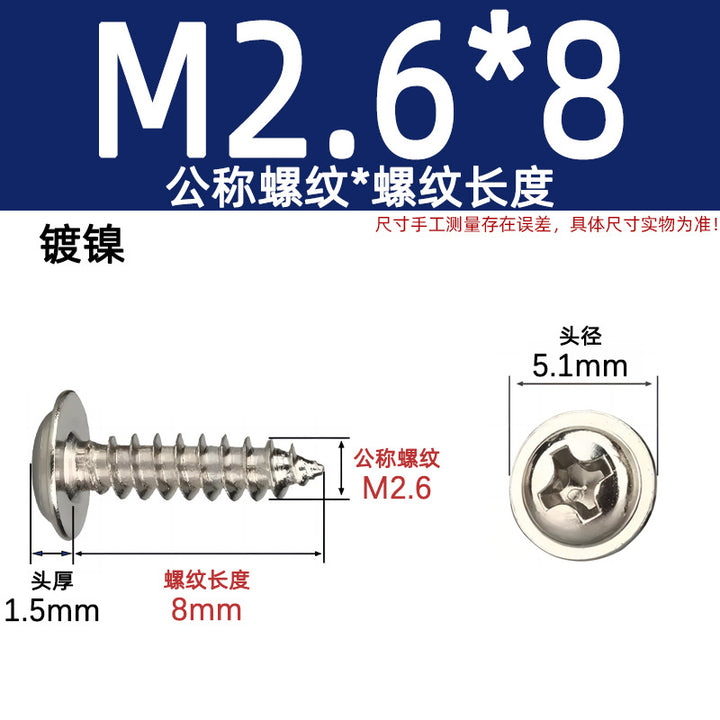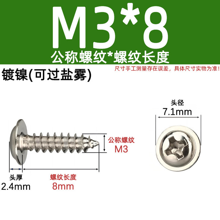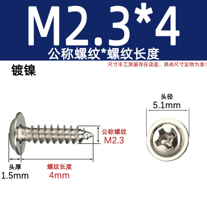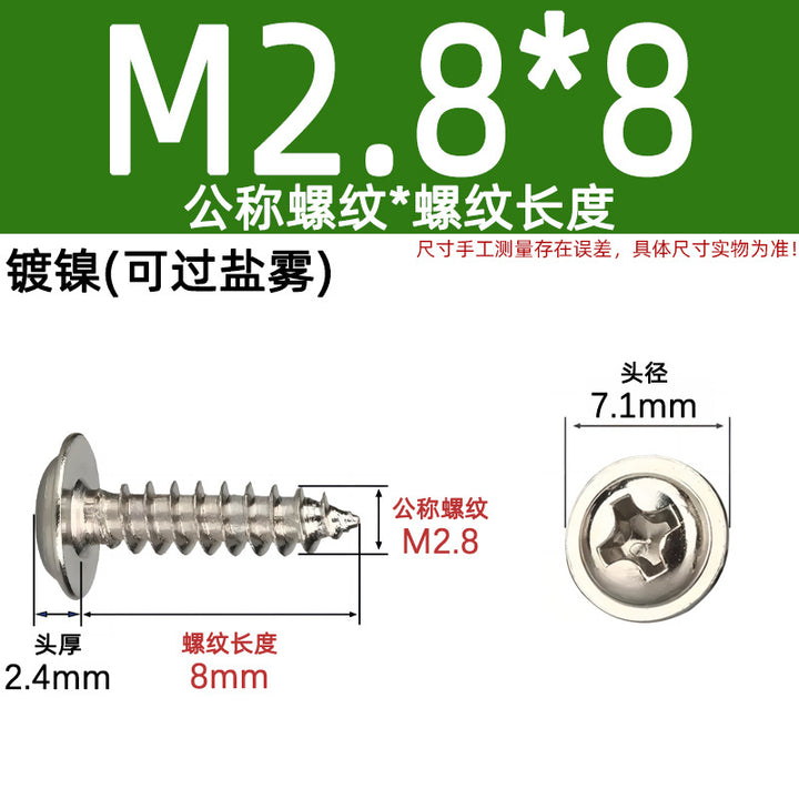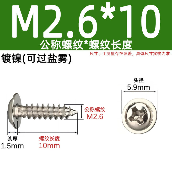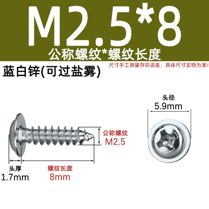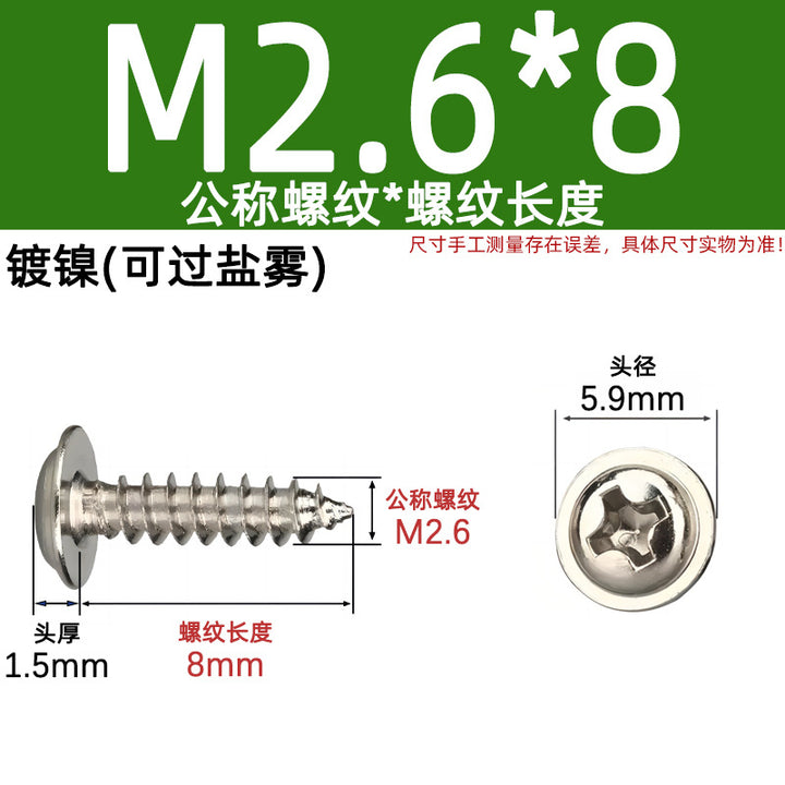 Band guide self-tapping M3 * 4 white zinc, Band guide self-tapping M3 * 5 white zinc, Band guide self-tapping M3 * 6 white zinc, Band guide self-tapping M3 * 7 white zinc, Band guide self-tapping M3 * 8 white zinc, Band guide self-tapping M3 * 10 white zinc, 带介自攻M3*12白锌, 带介自攻M3*14白锌, 带介自攻M3*16白锌, 带介自攻M3*18白锌, 带介自攻M3*20白锌, 带介自攻M3*25白锌, 带介自攻M3.2*4白锌, 带介自攻M3.2*4.5白锌, 带介自攻M3.2*5白锌, 带介自攻M3.2*6白锌, 带介自攻M3.5*6白锌, 带介自攻M3.5*8白锌, 带介自攻M3.5*10白锌, 带介自攻M3.5*12白锌, Band guide self-tapping M3.5 * 14 white zinc, Band guide self-tapping M3.5 * 30 white zinc, Band guide self-tapping M4 * 14 white zinc, Nickel plating with self-tapping M2 * 5, Nickel plating with self-tapping M2 * 6, Nickel plating with self-tapping M2 * 8, Nickel plating with self-tapping M2 * 10, Self-tapping M2.3 * 4 nickel plating, Self-tapping M2.3 * 5 nickel plating, 带介自攻M2.3*6镀镍, 带介自攻M2.3*8镀镍, 带介自攻M2.3*10镀镍, 带介自攻M2.5*5镀镍, 带介自攻M2.5*6镀镍, 带介自攻M2.5*8镀镍, 带介自攻M2.5*10镀镍, 带介自攻M2.6*5镀镍, 带介自攻M2.6*8镀镍, 带介自攻M2.6*10镀镍, 带介自攻M2.8*6镀镍, 带介自攻M2.8*8镀镍, 带介自攻M2.8*10镀镍, 带介自攻M3*4镀镍, 带介自攻M3*5镀镍, 带介自攻M3*6镀镍, Nickel plating with self-tapping M3 * 7, Nickel plating with self-tapping M3 * 8, Nickel plating with self-tapping M3 * 10, Nickel plating with self-tapping M3 * 12, Nickel plating with self-tapping M3 * 14, Nickel plating with self-tapping M3 * 16, Self-tapping M3.2 * 4.5 nickel plating, Self-tapping M3.2 * 5 nickel plating, Nickel plating with self-tapping M3.2 * 6, Self-tapping M3.5 * 8 nickel plating, 带介自攻M3.5*30镀镍, 带介自攻M3.5*35镀镍, 带介自攻M4*6镀镍, 带介自攻M4*10镀镍, 带介自攻M4*16镀镍, 带介自攻M4*20镀镍, 带介自攻M4*25镀镍, 带介自攻M4*30镀镍, 带介自攻M4*35镀镍, 带介自攻M2.3*6镀镍(可过盐雾), 带介自攻M2.3*8镀镍(可过盐雾), 带介自攻M2.6*8镀镍(可过盐雾), 带介自攻M2.6*10镀镍(可过盐雾), 带介自攻M2.8*8镀镍(可过盐雾), 带介自攻M2.8*10镀镍(可过盐雾), Nickel plating with self-tapping M3 * 5 (can pass salt spray), Nickel plating with self-tapping M3 * 6 (can pass salt spray), Nickel plating with self-tapping M3 * 8 (can pass salt spray), Nickel plating with self-tapping M3 * 10 (can pass salt spray), Nickel plating with self-tapping M3 * 12 (can pass salt spray), Nickel plating with self-tapping M3 * 14 (can pass salt spray), Nickel plating with self-tapping M3 * 16 (can pass salt spray), Nickel plating with self-tapping M3.5 * 6 (can pass salt spray), Self-tapping M3.5 * 8 nickel plating with medium (can pass salt spray), Nickel plating with self-tapping M3.5 * 35 (can pass salt spray), 带介自攻M4*6镀镍(可过盐雾), 带介自攻M4*8镀镍(可过盐雾), 带介自攻M4*10镀镍(可过盐雾), 带介自攻M4*14镀镍(可过盐雾), 带介自攻M4*40镀镍(可过盐雾), 带介自攻M3*4蓝白锌, 带介自攻M3*5蓝白锌, 带介自攻M3*6蓝白锌, 带介自攻M3*8蓝白锌, 带介自攻M3*10蓝白锌, 带介自攻M3*16蓝白锌, 带介自攻M3.5*6蓝白锌, 带介自攻M3.5*8蓝白锌, 带介自攻M3.5*10蓝白锌, Band guide self-tapping M3.5 * 12 blue and white zinc, Band guide self-tapping M3.5 * 30 blue and white zinc, Self-tapping M2.3 * 5 blue and white zinc (can pass salt spray), Self-tapping M2.5 * 6 blue and white zinc (can pass salt spray), Self-tapping M2.5 * 8 blue and white zinc (can pass salt spray), Self-tapping M2.6 * 5 blue and white zinc (can pass salt spray) |