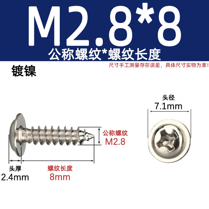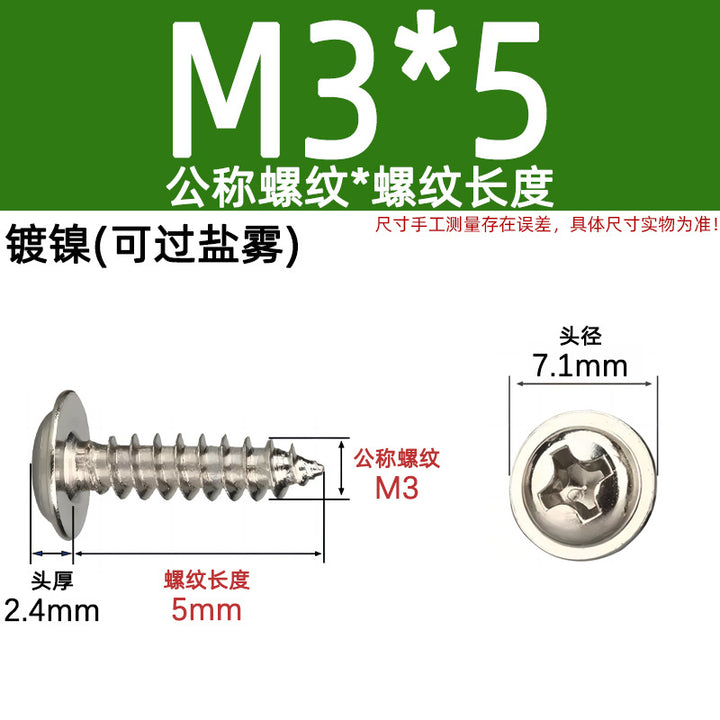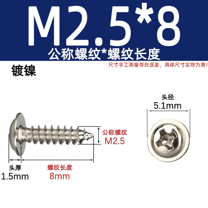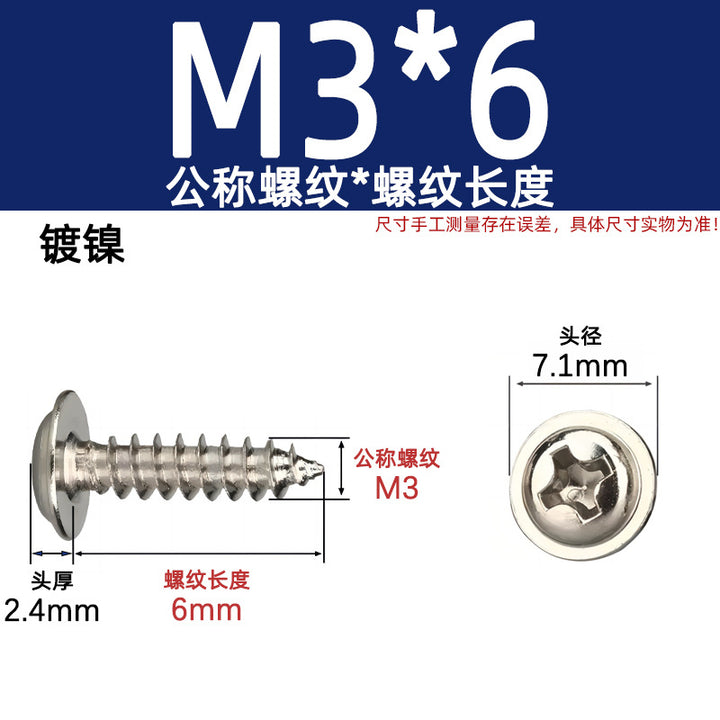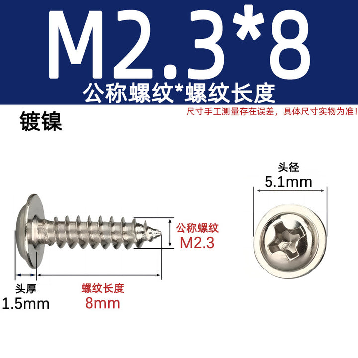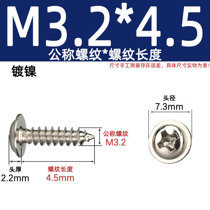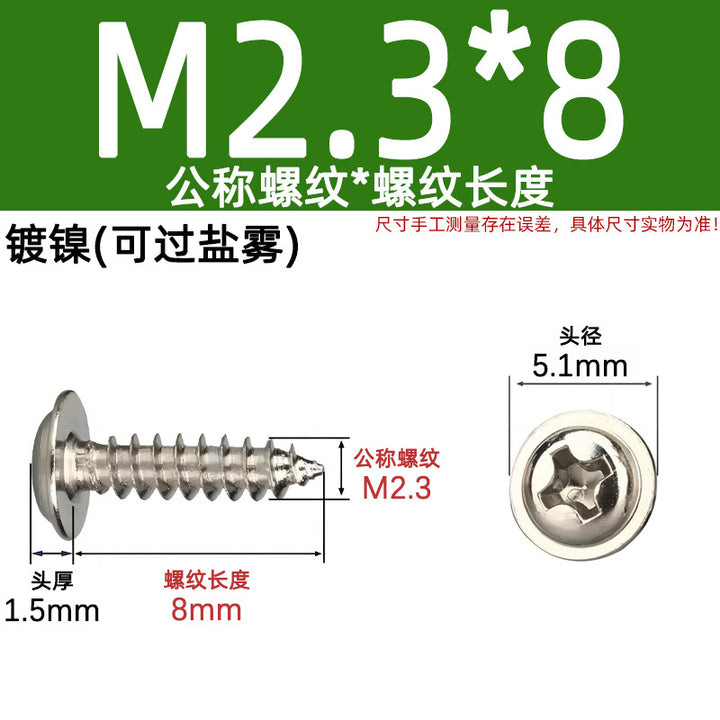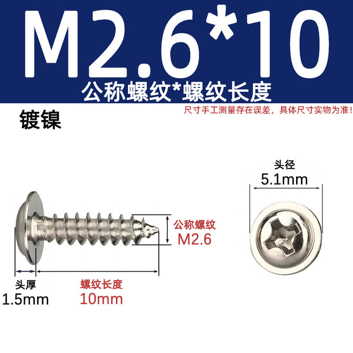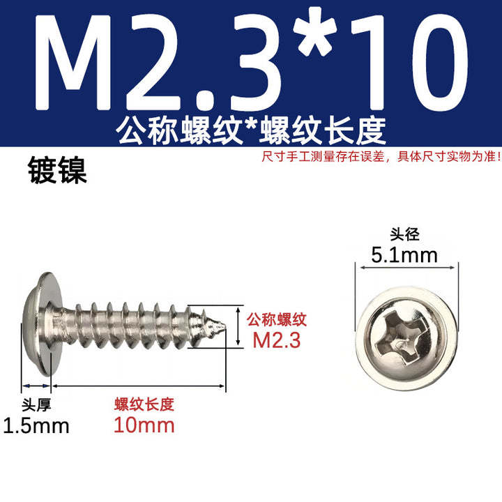 Band guide self-tapping M3 * 4 white zinc, Band guide self-tapping M3 * 5 white zinc, Band guide self-tapping M3 * 6 white zinc, Band guide self-tapping M3 * 7 white zinc, Band guide self-tapping M3 * 8 white zinc, Band guide self-tapping M3 * 10 white zinc, 带介自攻M3*12白锌, 带介自攻M3*14白锌, 带介自攻M3*16白锌, 带介自攻M3*18白锌, 带介自攻M3*20白锌, 带介自攻M3*25白锌, 带介自攻M3.2*4白锌, 带介自攻M3.2*4.5白锌, 带介自攻M3.2*5白锌, 带介自攻M3.2*6白锌, 带介自攻M3.5*6白锌, 带介自攻M3.5*8白锌, 带介自攻M3.5*10白锌, 带介自攻M3.5*12白锌, Band guide self-tapping M3.5 * 14 white zinc, Band guide self-tapping M3.5 * 30 white zinc, Band guide self-tapping M4 * 14 white zinc, Nickel plating with self-tapping M2 * 5, Nickel plating with self-tapping M2 * 6, Nickel plating with self-tapping M2 * 8, Nickel plating with self-tapping M2 * 10, Self-tapping M2.3 * 4 nickel plating, Self-tapping M2.3 * 5 nickel plating, 带介自攻M2.3*6镀镍, 带介自攻M2.3*8镀镍, 带介自攻M2.3*10镀镍, 带介自攻M2.5*5镀镍, 带介自攻M2.5*6镀镍, 带介自攻M2.5*8镀镍, 带介自攻M2.5*10镀镍, 带介自攻M2.6*5镀镍, 带介自攻M2.6*8镀镍, 带介自攻M2.6*10镀镍, 带介自攻M2.8*6镀镍, 带介自攻M2.8*8镀镍, 带介自攻M2.8*10镀镍, 带介自攻M3*4镀镍, 带介自攻M3*5镀镍, 带介自攻M3*6镀镍, Nickel plating with self-tapping M3 * 7, Nickel plating with self-tapping M3 * 8, Nickel plating with self-tapping M3 * 10, Nickel plating with self-tapping M3 * 12, Nickel plating with self-tapping M3 * 14, Nickel plating with self-tapping M3 * 16, Self-tapping M3.2 * 4.5 nickel plating, Self-tapping M3.2 * 5 nickel plating, Nickel plating with self-tapping M3.2 * 6, Self-tapping M3.5 * 8 nickel plating, 带介自攻M3.5*30镀镍, 带介自攻M3.5*35镀镍, 带介自攻M4*6镀镍, 带介自攻M4*10镀镍, 带介自攻M4*16镀镍, 带介自攻M4*20镀镍, 带介自攻M4*25镀镍, 带介自攻M4*30镀镍, 带介自攻M4*35镀镍, 带介自攻M2.3*6镀镍(可过盐雾), 带介自攻M2.3*8镀镍(可过盐雾), 带介自攻M2.6*8镀镍(可过盐雾), 带介自攻M2.6*10镀镍(可过盐雾), 带介自攻M2.8*8镀镍(可过盐雾), 带介自攻M2.8*10镀镍(可过盐雾), Nickel plating with self-tapping M3 * 5 (can pass salt spray), Nickel plating with self-tapping M3 * 6 (can pass salt spray), Nickel plating with self-tapping M3 * 8 (can pass salt spray), Nickel plating with self-tapping M3 * 10 (can pass salt spray), Nickel plating with self-tapping M3 * 12 (can pass salt spray), Nickel plating with self-tapping M3 * 14 (can pass salt spray), Nickel plating with self-tapping M3 * 16 (can pass salt spray), Nickel plating with self-tapping M3.5 * 6 (can pass salt spray), Self-tapping M3.5 * 8 nickel plating with medium (can pass salt spray), Nickel plating with self-tapping M3.5 * 35 (can pass salt spray), 带介自攻M4*6镀镍(可过盐雾), 带介自攻M4*8镀镍(可过盐雾), 带介自攻M4*10镀镍(可过盐雾), 带介自攻M4*14镀镍(可过盐雾), 带介自攻M4*40镀镍(可过盐雾), 带介自攻M3*4蓝白锌, 带介自攻M3*5蓝白锌, 带介自攻M3*6蓝白锌, 带介自攻M3*8蓝白锌, 带介自攻M3*10蓝白锌, 带介自攻M3*16蓝白锌, 带介自攻M3.5*6蓝白锌, 带介自攻M3.5*8蓝白锌, 带介自攻M3.5*10蓝白锌, Band guide self-tapping M3.5 * 12 blue and white zinc, Band guide self-tapping M3.5 * 30 blue and white zinc, Self-tapping M2.3 * 5 blue and white zinc (can pass salt spray), Self-tapping M2.5 * 6 blue and white zinc (can pass salt spray), Self-tapping M2.5 * 8 blue and white zinc (can pass salt spray), Self-tapping M2.6 * 5 blue and white zinc (can pass salt spray) |