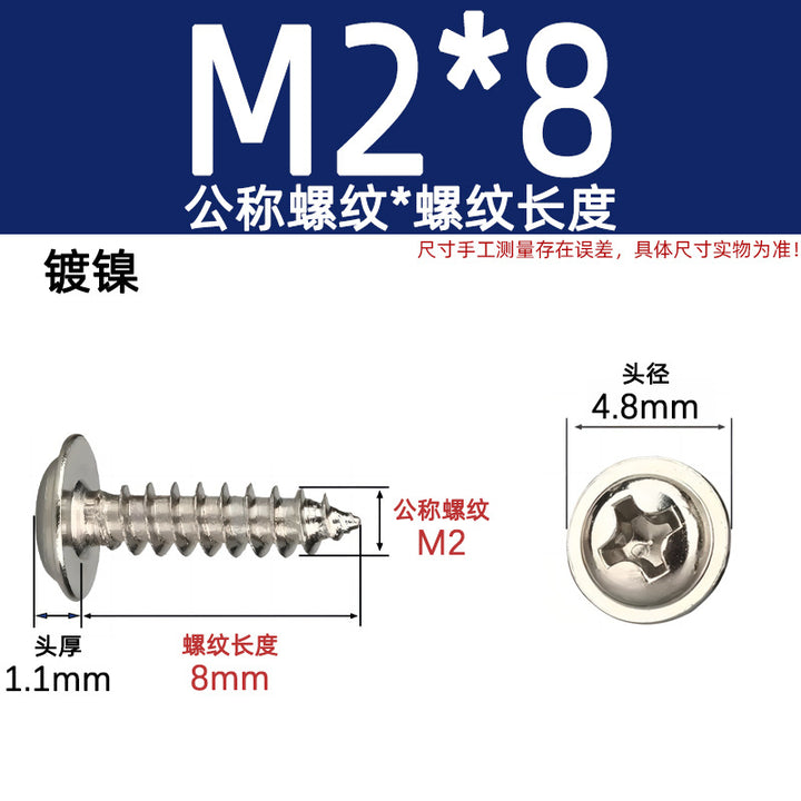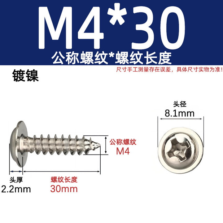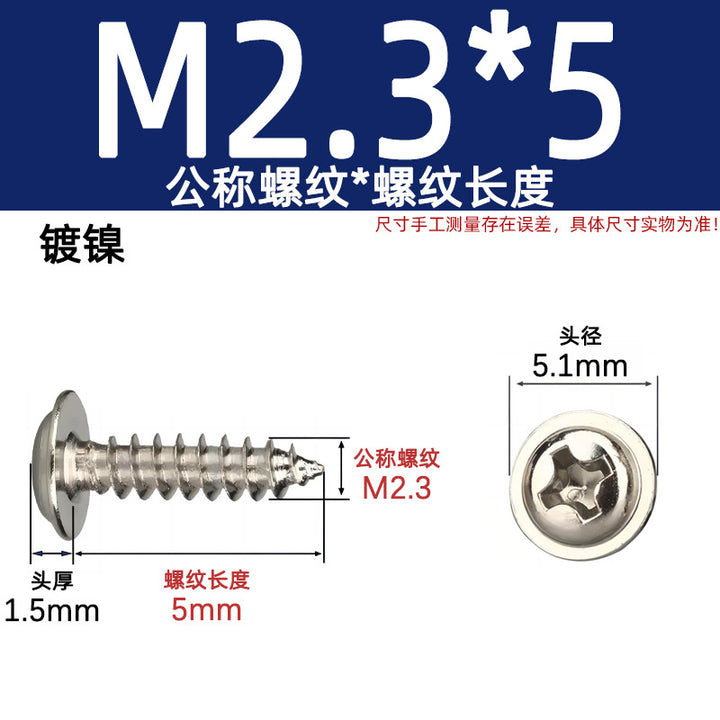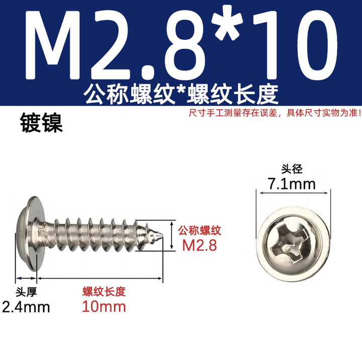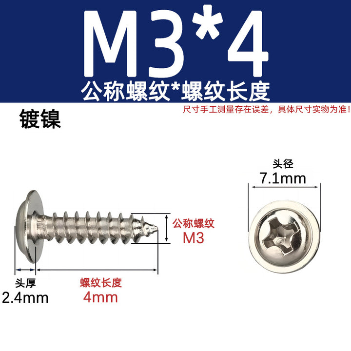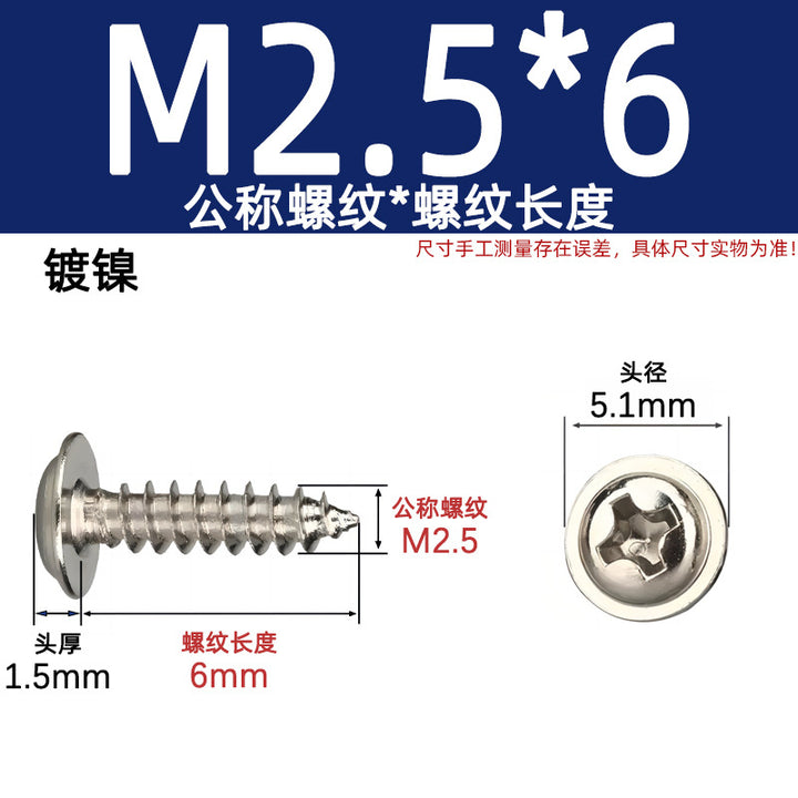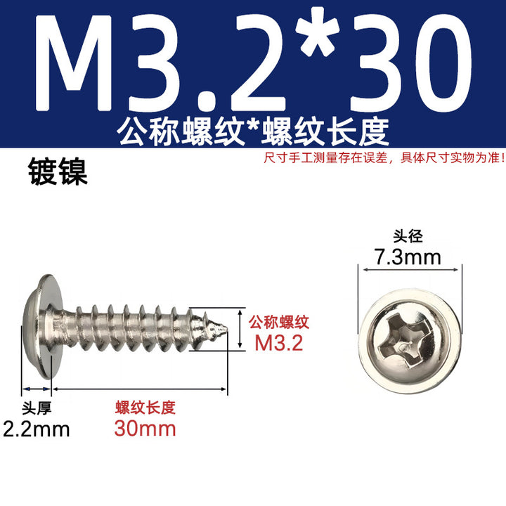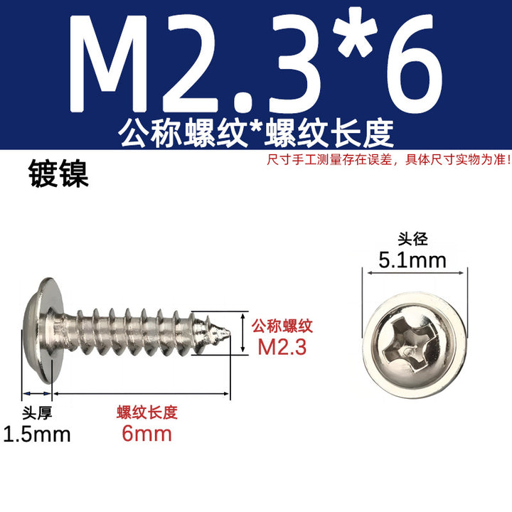 Band guide self-tapping M3 * 4 white zinc, Band guide self-tapping M3 * 5 white zinc, Band guide self-tapping M3 * 6 white zinc, Band guide self-tapping M3 * 7 white zinc, Band guide self-tapping M3 * 8 white zinc, Band guide self-tapping M3 * 10 white zinc, 带介自攻M3*12白锌, 带介自攻M3*14白锌, 带介自攻M3*16白锌, 带介自攻M3*18白锌, 带介自攻M3*20白锌, 带介自攻M3*25白锌, 带介自攻M3.2*4白锌, 带介自攻M3.2*4.5白锌, 带介自攻M3.2*5白锌, 带介自攻M3.2*6白锌, 带介自攻M3.5*6白锌, 带介自攻M3.5*8白锌, 带介自攻M3.5*10白锌, 带介自攻M3.5*12白锌, Band guide self-tapping M3.5 * 14 white zinc, Band guide self-tapping M3.5 * 30 white zinc, Band guide self-tapping M4 * 14 white zinc, Nickel plating with self-tapping M2 * 5, Nickel plating with self-tapping M2 * 6, Nickel plating with self-tapping M2 * 8, Nickel plating with self-tapping M2 * 10, Self-tapping M2.3 * 4 nickel plating, Self-tapping M2.3 * 5 nickel plating, 带介自攻M2.3*6镀镍, 带介自攻M2.3*8镀镍, 带介自攻M2.3*10镀镍, 带介自攻M2.5*5镀镍, 带介自攻M2.5*6镀镍, 带介自攻M2.5*8镀镍, 带介自攻M2.5*10镀镍, 带介自攻M2.6*5镀镍, 带介自攻M2.6*8镀镍, 带介自攻M2.6*10镀镍, 带介自攻M2.8*6镀镍, 带介自攻M2.8*8镀镍, 带介自攻M2.8*10镀镍, 带介自攻M3*4镀镍, 带介自攻M3*5镀镍, 带介自攻M3*6镀镍, Nickel plating with self-tapping M3 * 7, Nickel plating with self-tapping M3 * 8, Nickel plating with self-tapping M3 * 10, Nickel plating with self-tapping M3 * 12, Nickel plating with self-tapping M3 * 14, Nickel plating with self-tapping M3 * 16, Self-tapping M3.2 * 4.5 nickel plating, Self-tapping M3.2 * 5 nickel plating, Nickel plating with self-tapping M3.2 * 6, Self-tapping M3.5 * 8 nickel plating, 带介自攻M3.5*30镀镍, 带介自攻M3.5*35镀镍, 带介自攻M4*6镀镍, 带介自攻M4*10镀镍, 带介自攻M4*16镀镍, 带介自攻M4*20镀镍, 带介自攻M4*25镀镍, 带介自攻M4*30镀镍, 带介自攻M4*35镀镍, 带介自攻M2.3*6镀镍(可过盐雾), 带介自攻M2.3*8镀镍(可过盐雾), 带介自攻M2.6*8镀镍(可过盐雾), 带介自攻M2.6*10镀镍(可过盐雾), 带介自攻M2.8*8镀镍(可过盐雾), 带介自攻M2.8*10镀镍(可过盐雾), Nickel plating with self-tapping M3 * 5 (can pass salt spray), Nickel plating with self-tapping M3 * 6 (can pass salt spray), Nickel plating with self-tapping M3 * 8 (can pass salt spray), Nickel plating with self-tapping M3 * 10 (can pass salt spray), Nickel plating with self-tapping M3 * 12 (can pass salt spray), Nickel plating with self-tapping M3 * 14 (can pass salt spray), Nickel plating with self-tapping M3 * 16 (can pass salt spray), Nickel plating with self-tapping M3.5 * 6 (can pass salt spray), Self-tapping M3.5 * 8 nickel plating with medium (can pass salt spray), Nickel plating with self-tapping M3.5 * 35 (can pass salt spray), 带介自攻M4*6镀镍(可过盐雾), 带介自攻M4*8镀镍(可过盐雾), 带介自攻M4*10镀镍(可过盐雾), 带介自攻M4*14镀镍(可过盐雾), 带介自攻M4*40镀镍(可过盐雾), 带介自攻M3*4蓝白锌, 带介自攻M3*5蓝白锌, 带介自攻M3*6蓝白锌, 带介自攻M3*8蓝白锌, 带介自攻M3*10蓝白锌, 带介自攻M3*16蓝白锌, 带介自攻M3.5*6蓝白锌, 带介自攻M3.5*8蓝白锌, 带介自攻M3.5*10蓝白锌, Band guide self-tapping M3.5 * 12 blue and white zinc, Band guide self-tapping M3.5 * 30 blue and white zinc, Self-tapping M2.3 * 5 blue and white zinc (can pass salt spray), Self-tapping M2.5 * 6 blue and white zinc (can pass salt spray), Self-tapping M2.5 * 8 blue and white zinc (can pass salt spray), Self-tapping M2.6 * 5 blue and white zinc (can pass salt spray) |