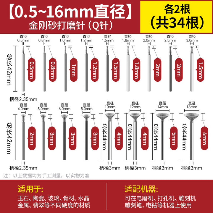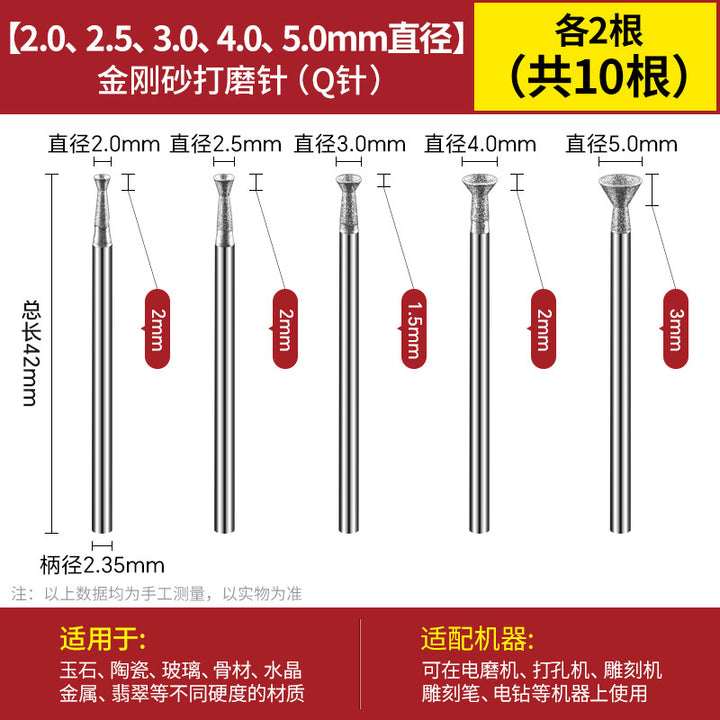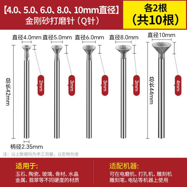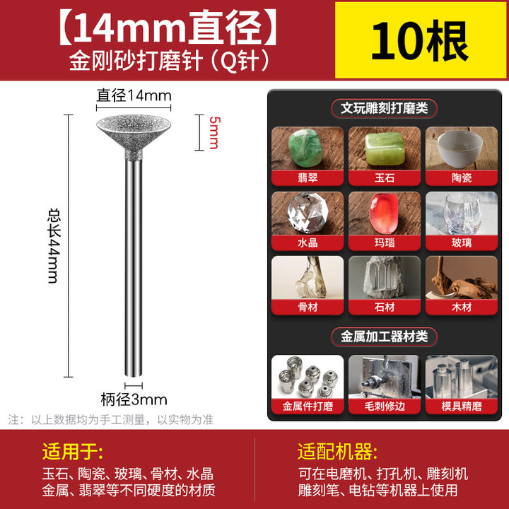 Q-needle emery grinding head round bead grinding rounded walnut grinding concave concave needle socket bead tool jade engraving tool