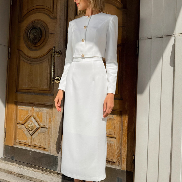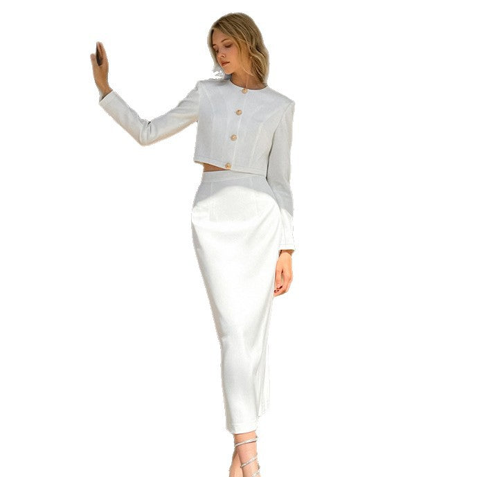 Qianjin style white high-end short slim-fitting small blazer long skirt set autumn fashion casual two-piece set