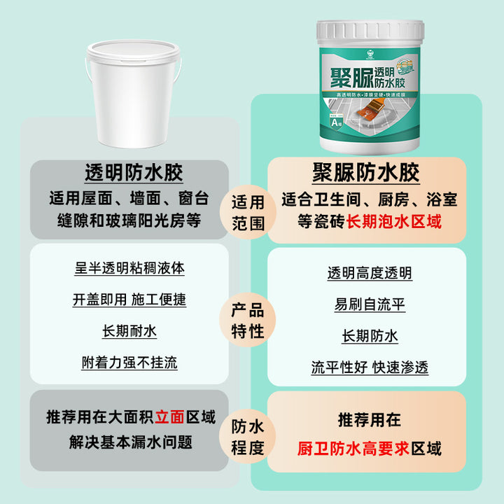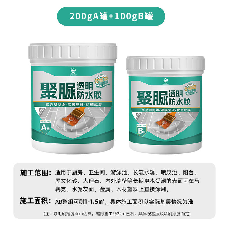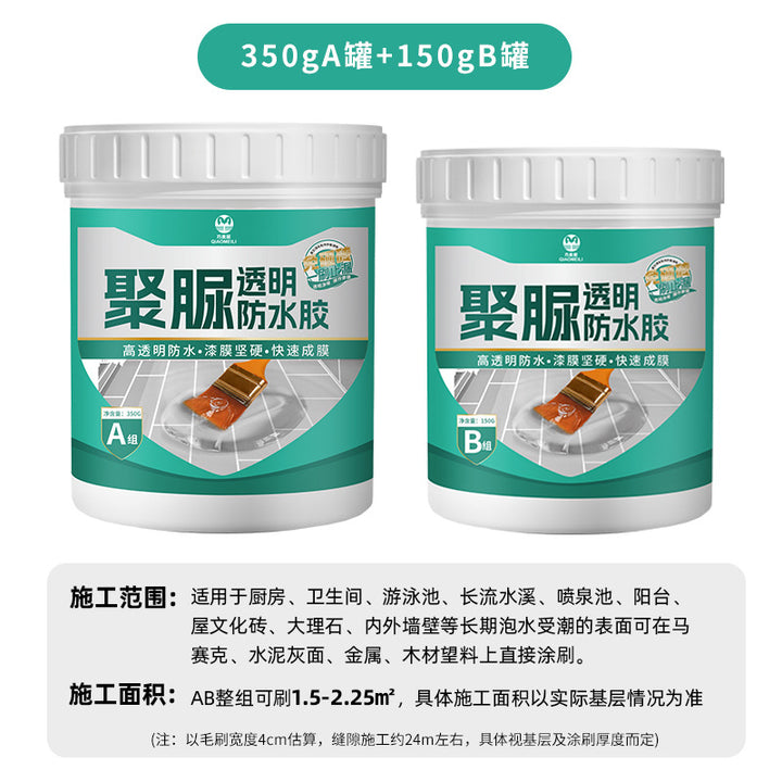 Polyurea transparent waterproof glue [construction area 1-1.5 square meters]; 300g, Polyurea transparent waterproof glue [construction area 1.5-2 square meters]; 500g |