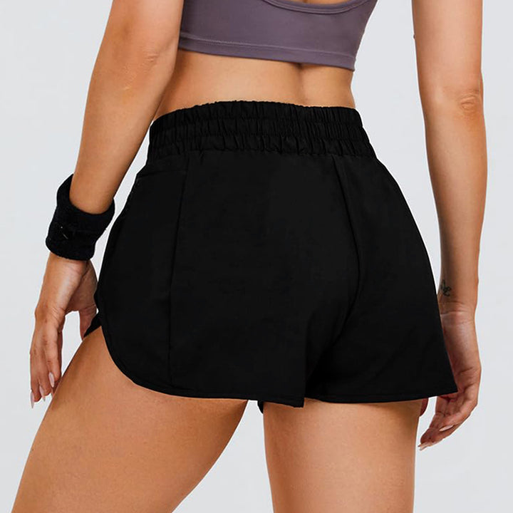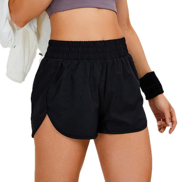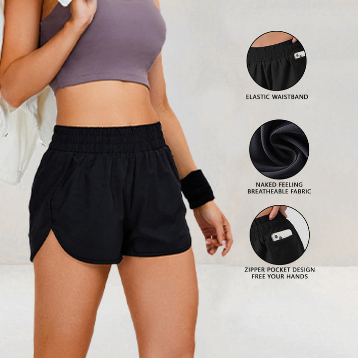 Quick-drying waist pull-up double-layer pocket yoga shorts breathable anti-light shorts outdo...