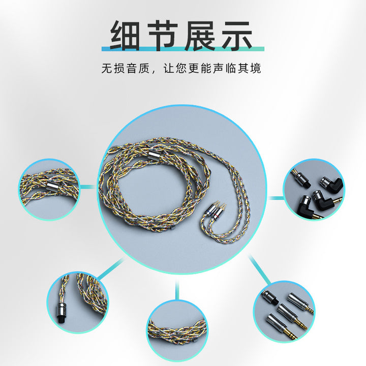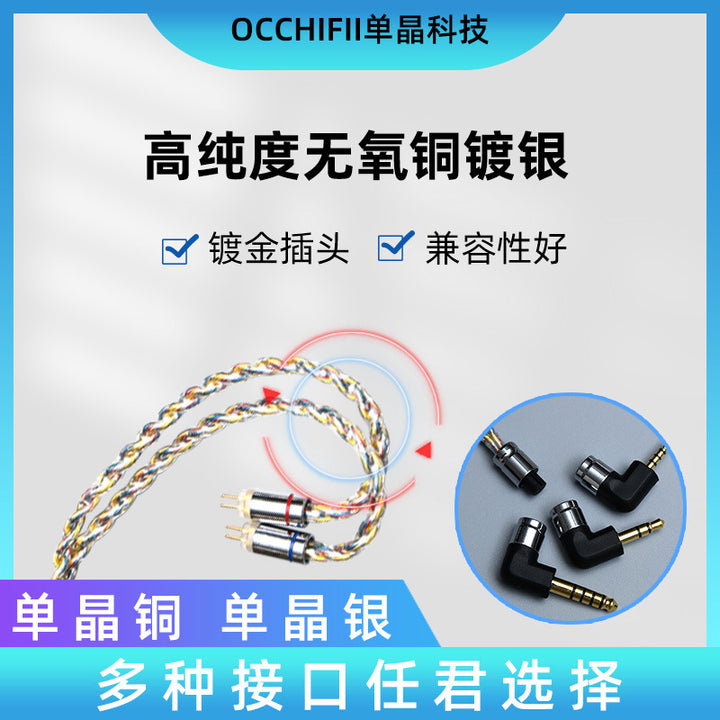R129HMT single crystal copper silver headphone cable four strands coaxial headphone cable 0.78 double needle MMCX pin fever wire