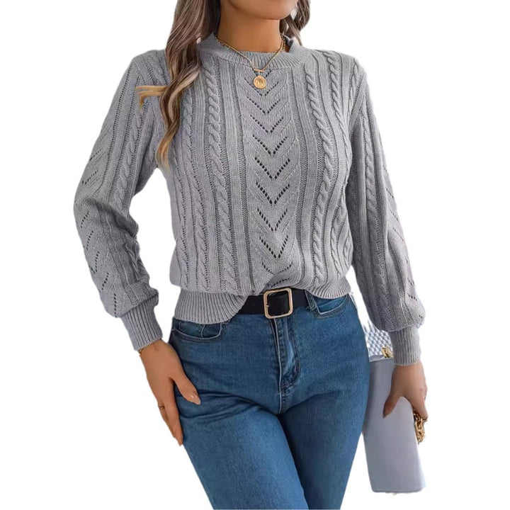 Real autumn and winter European and American casual solid color hollow lantern sleeve pullover sweater, independent station European and American ...