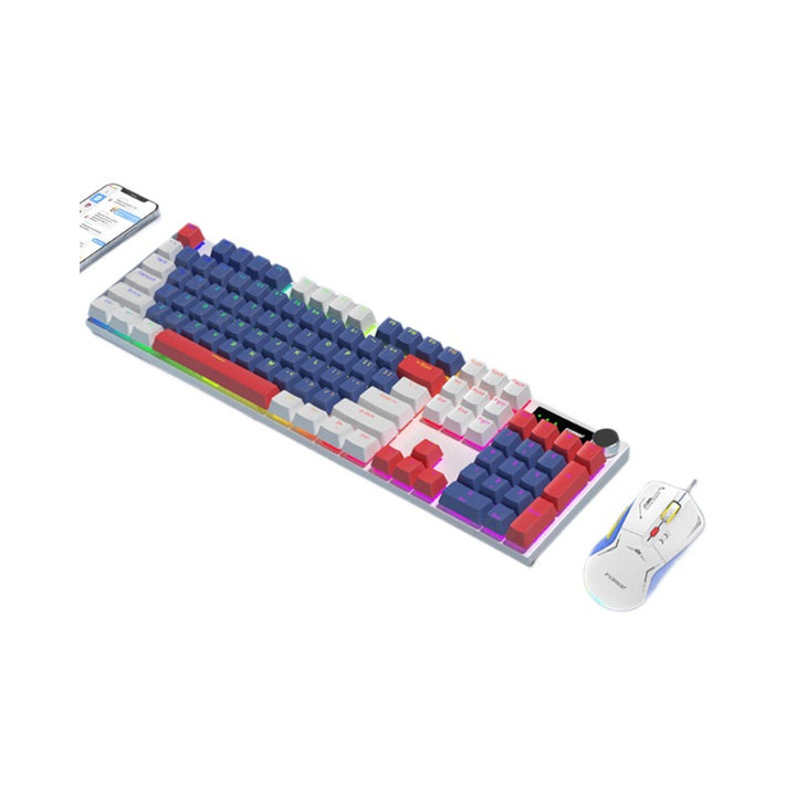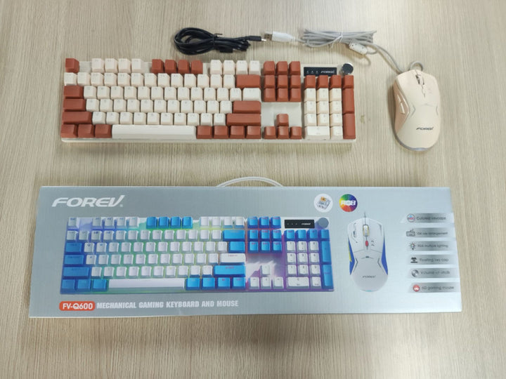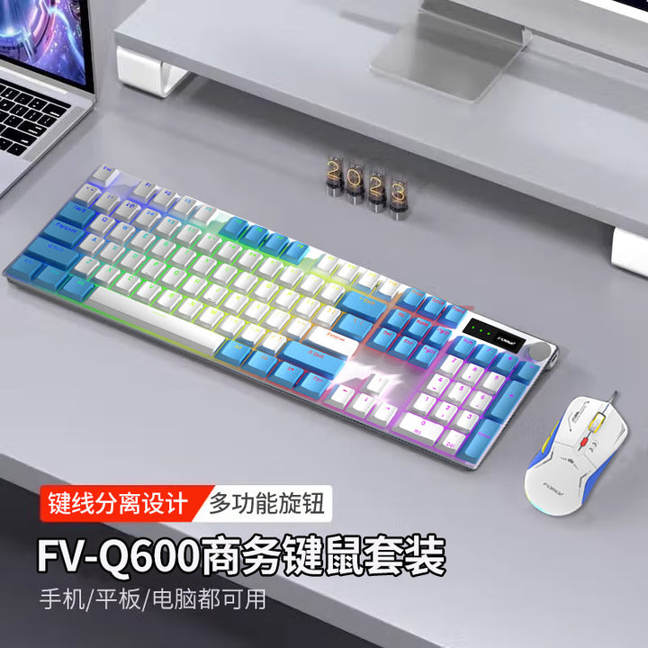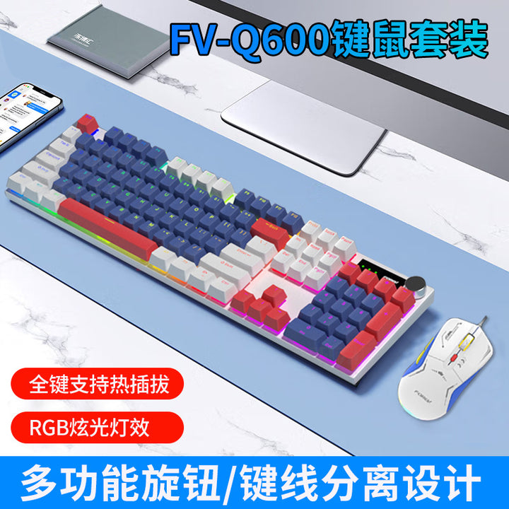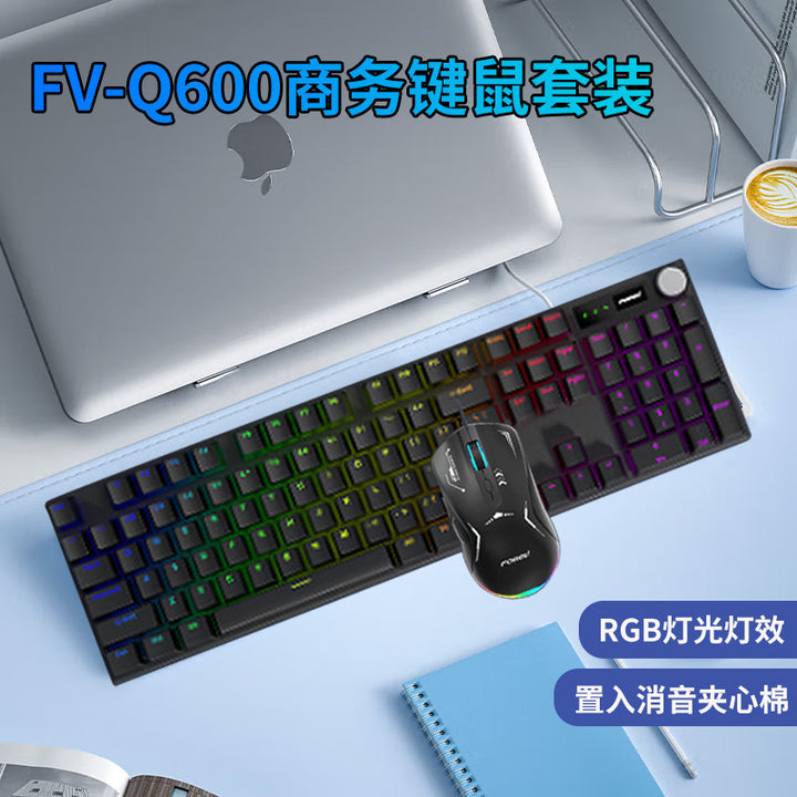 Real mechanical keyboard FVQ600 e-sports game rainbow luminous 104-key laptop wired keyboard and mouse set