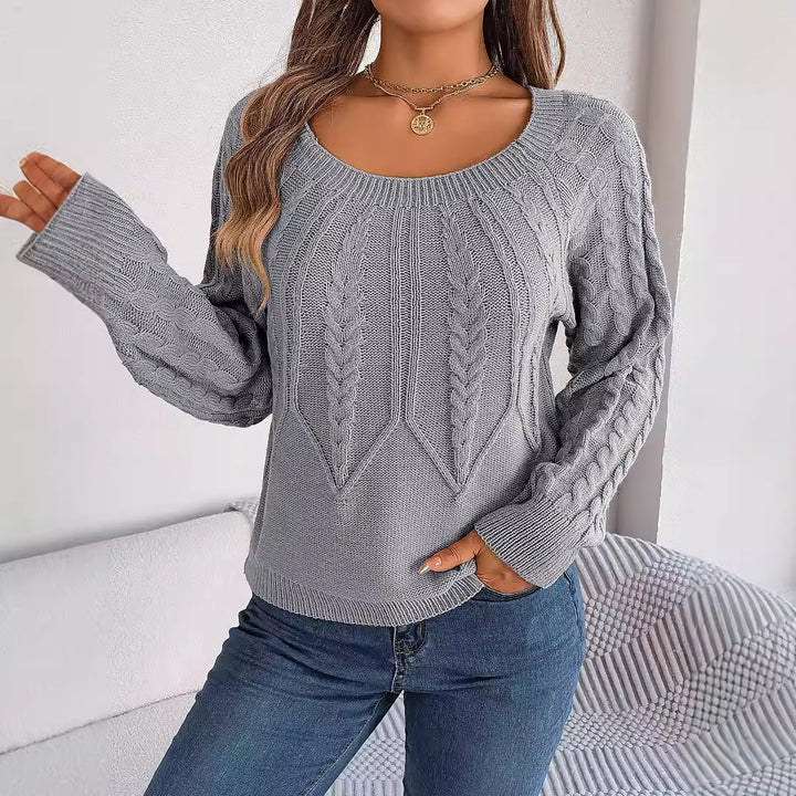 Real shot 2023 autumn and winter casual solid color twist long-sleeved pullover sweater, European and American women's clothing