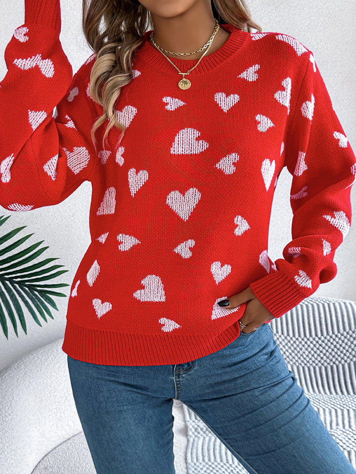 Real shot 2025 autumn and winter casual color contrast love lantern sleeve pullover sweater, Valentine's Day women's clothing