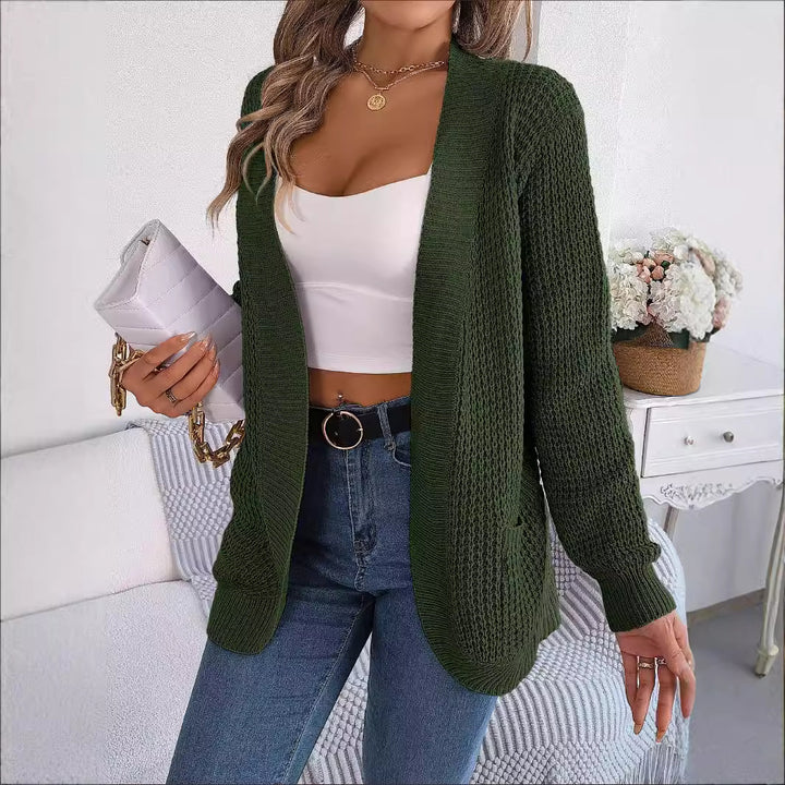 Real shot 2025 autumn and winter casual pocket long-sleeved knitted sweater cardigan jacket, popular women's clothing