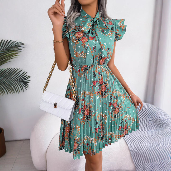 Real shot 2025 European and American spring and summer temperament flower lace-up waist pendulum pleated skirt, independent station women's clothing