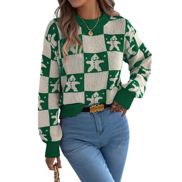Real shot autumn and winter European and American snowman plaid lantern long-sleeved pullover sweater, independent station women's Christmas