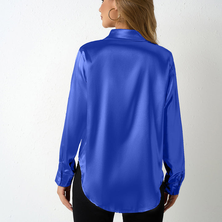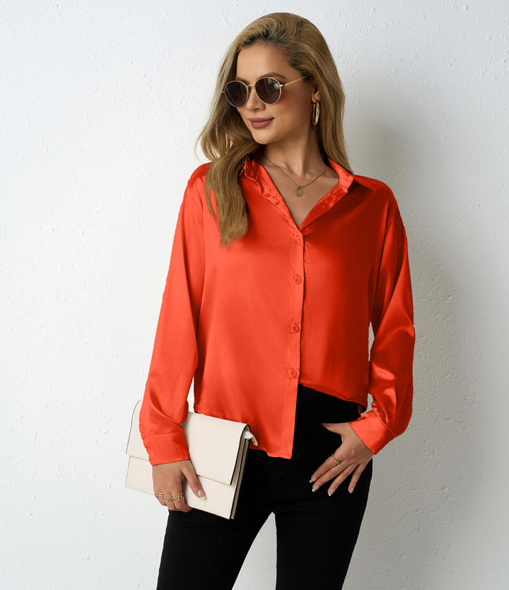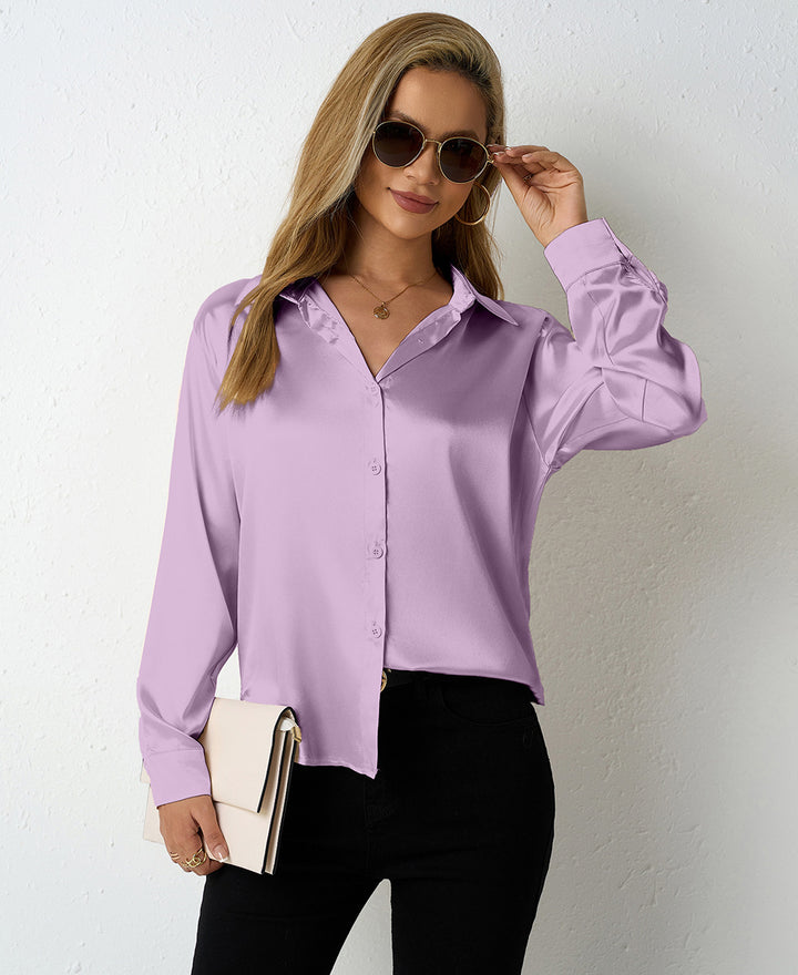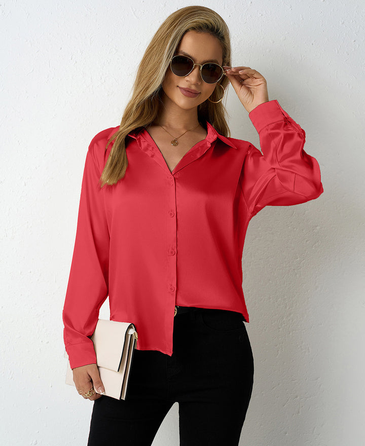 Real women's satin shirt women, simple v-neck cardigan shirt, women's loose top
