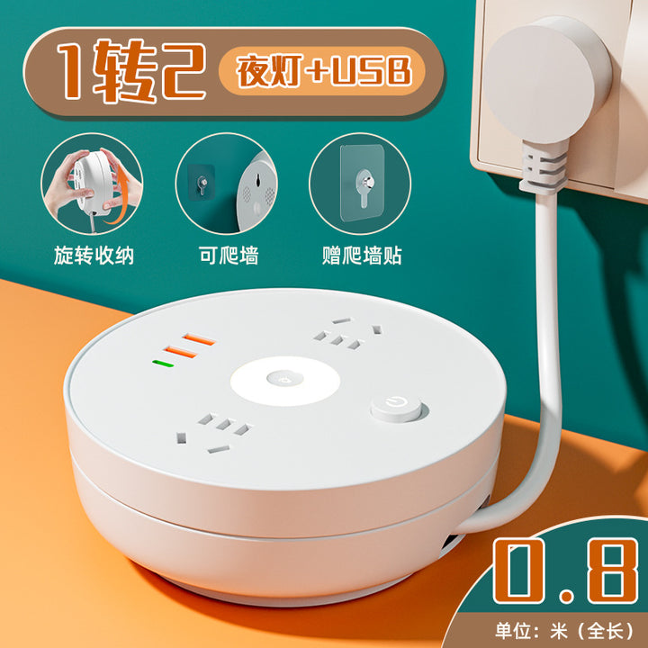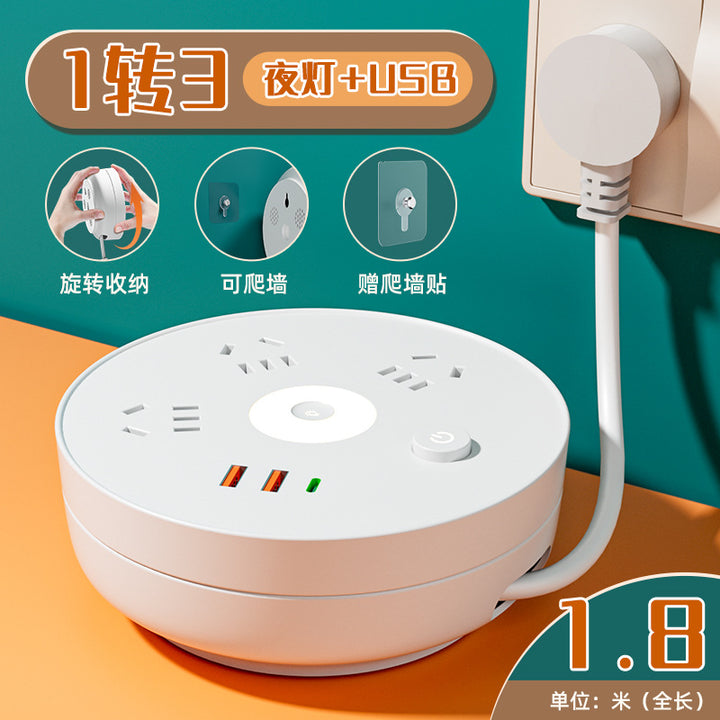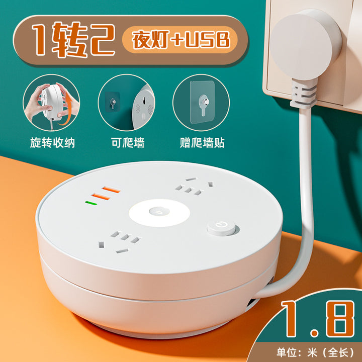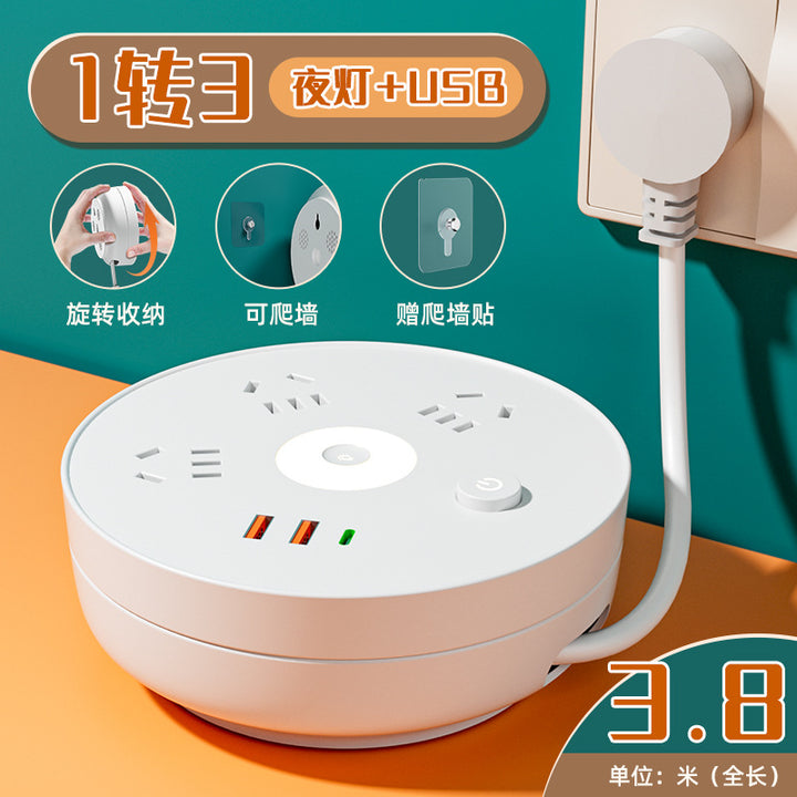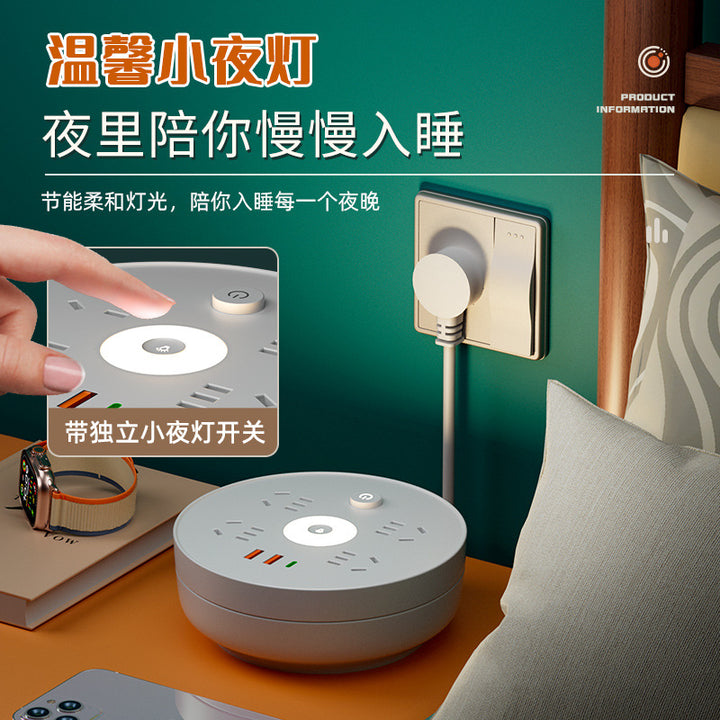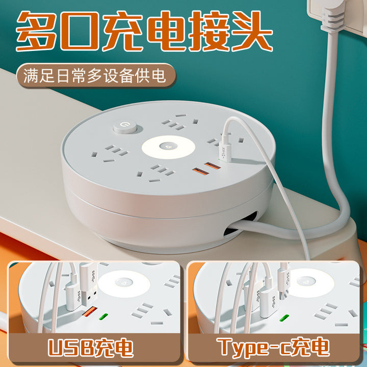 Receivable cable socket Porous position, with night light USB power strip Multifunctional plug-in board Plug-in board Home office socket
