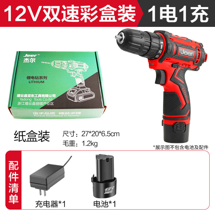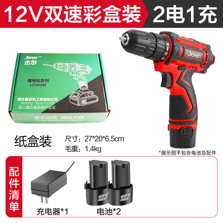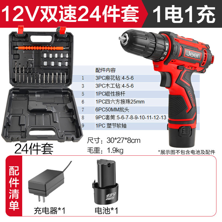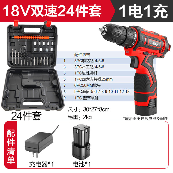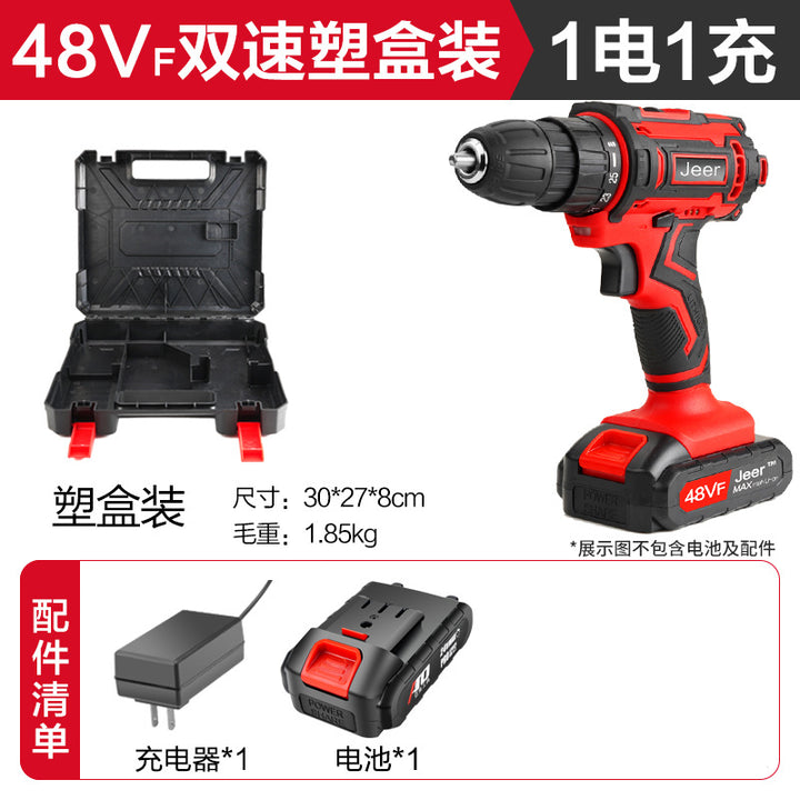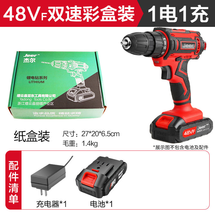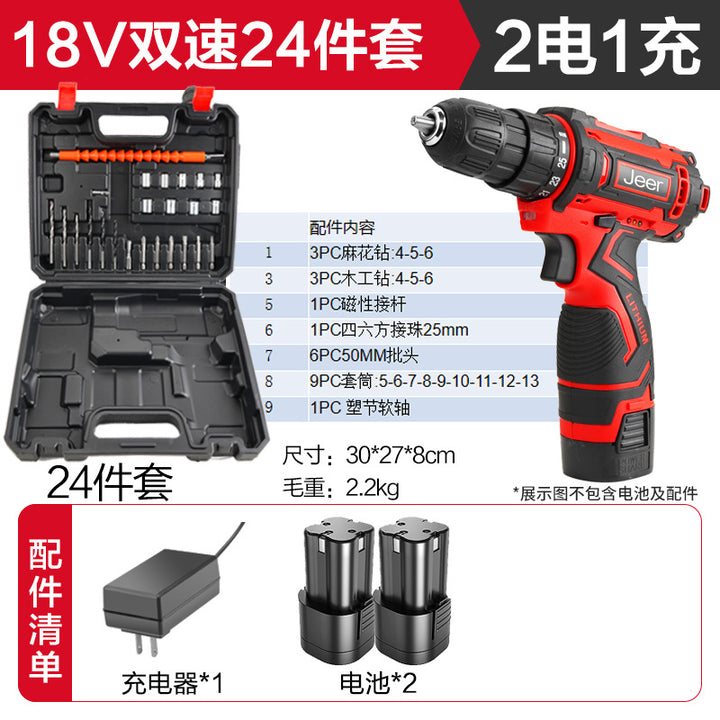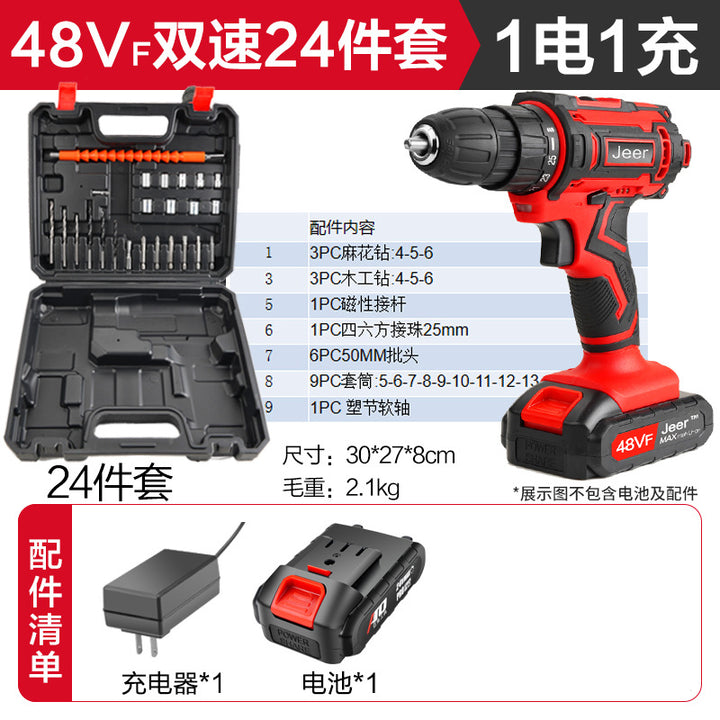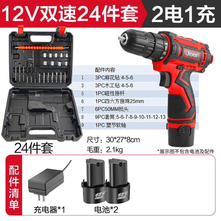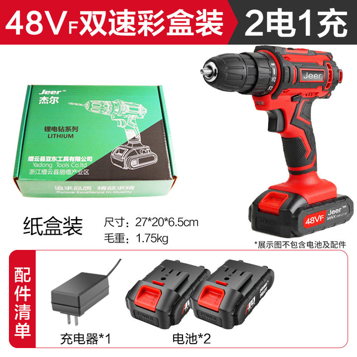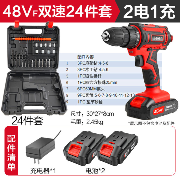 Rechargeable electric drill, hand electric drill, lithium battery two-speed pistol drill, household electric wireless multi-functional lithium elec...