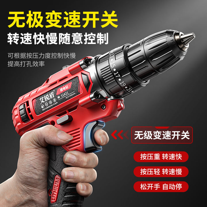 Rechargeable lithium battery drill hand drill wireless lithium battery household pistol drill electric screwdriver impact drill electric drill