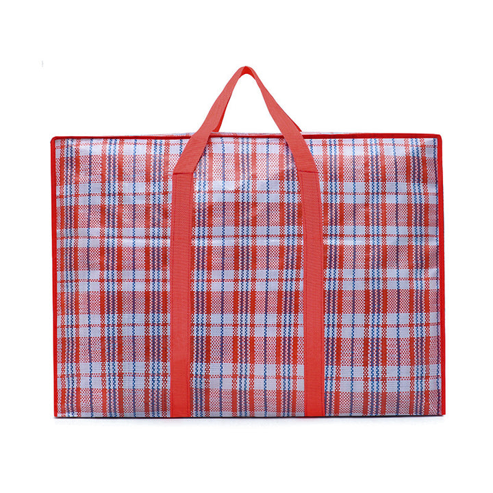 Red and blue grid pp woven bag school season quilt storage bag luggage moving bag hand-held thickened packing bag