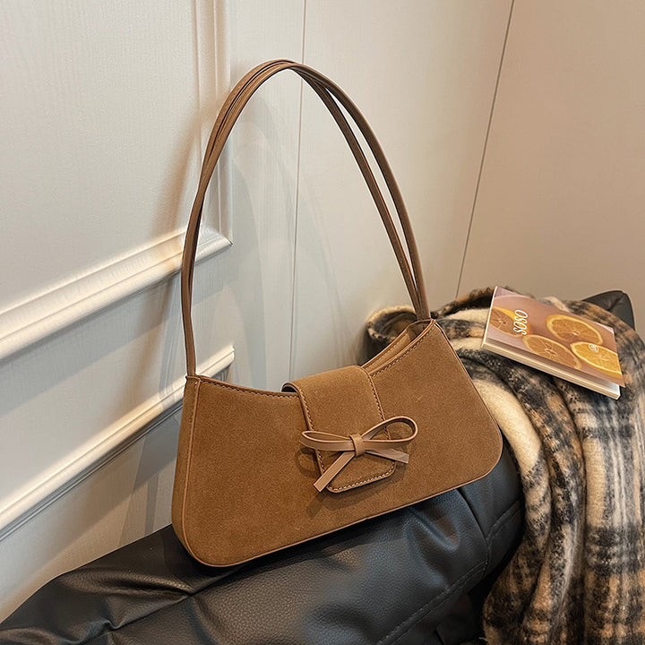 Red bag women's bag 2025 new shoulder baguette bag Korean version fashion minimalist niche bow armpit bag