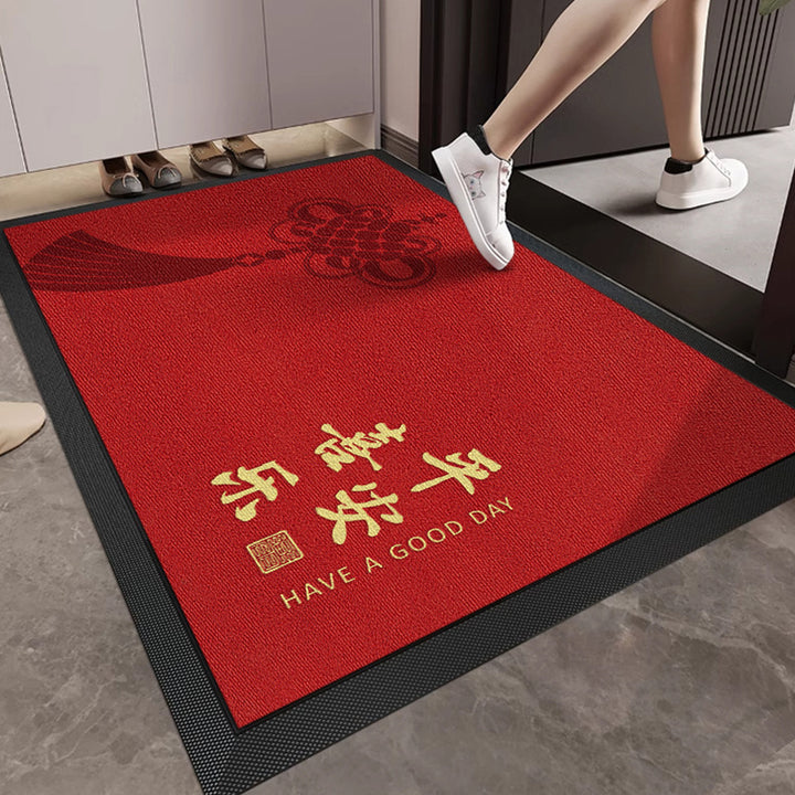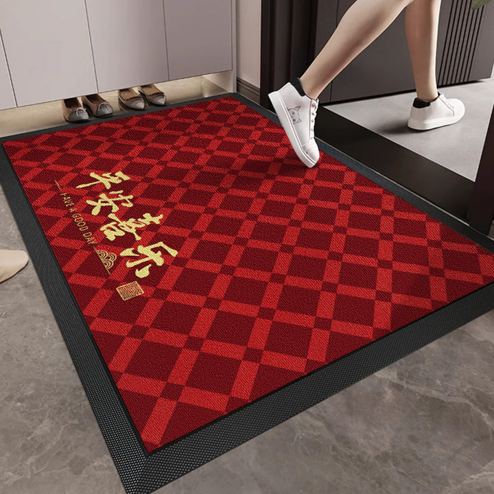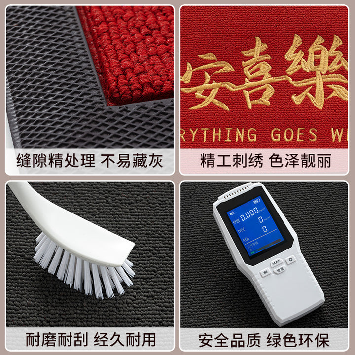 Red high-end entrance door floor mat, villa luxury high-end gate entry door dirt-resistant leave-in embroidered foot mat