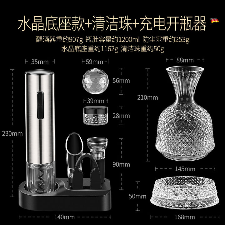 Glass Vortex Decanter: Crystal Bottom, Glass vortex decanter: solid wood bottom, Glass vortex decanter: crystal bottom + cleaning beads, Glass vortex decanter: solid wood bottom + cleaning beads, Glass vortex decanter: crystal bottom + cleaning beads + electric bottle opener, Glass vortex decanter: solid wood bottom + cleaning beads + electric bottle opener, Mirror rotating decanter |