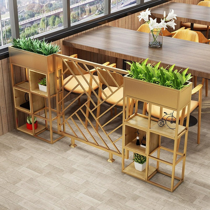 Restaurant booth low partition screen bar hot pot hotel industrial wind fence green plant flower stand wrought iron railing partition
