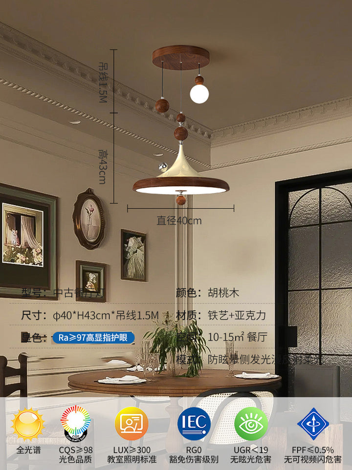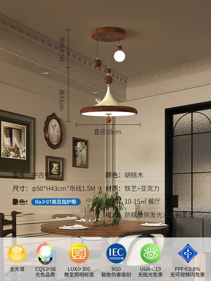 Restaurant chandelier antique retro walnut color creative ball dining table bar light warm atmosphere eye protection light