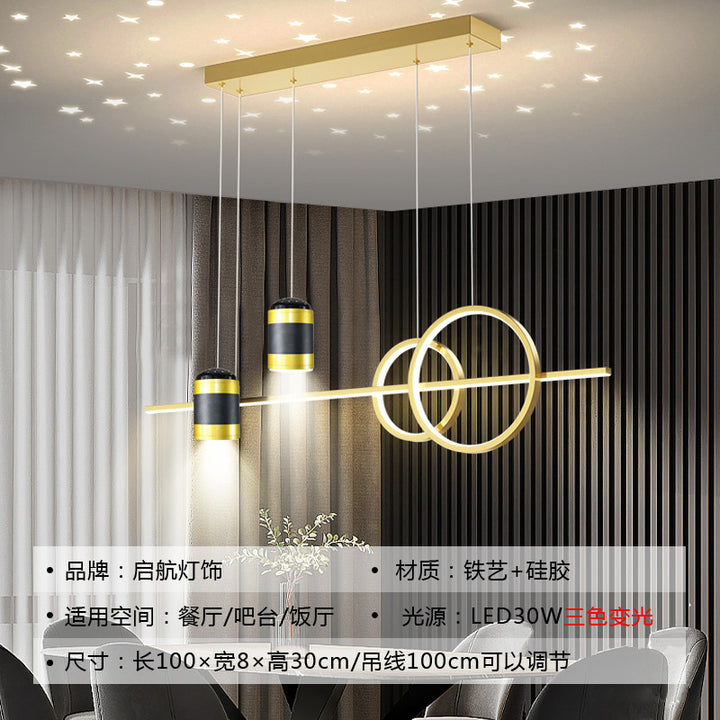 Restaurant chandelier light luxury lighting modern simple dining room dining table bar table Nordic minimalist long wrought iron star chandelier