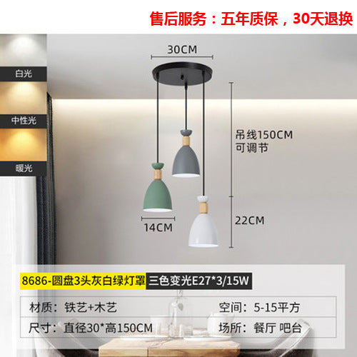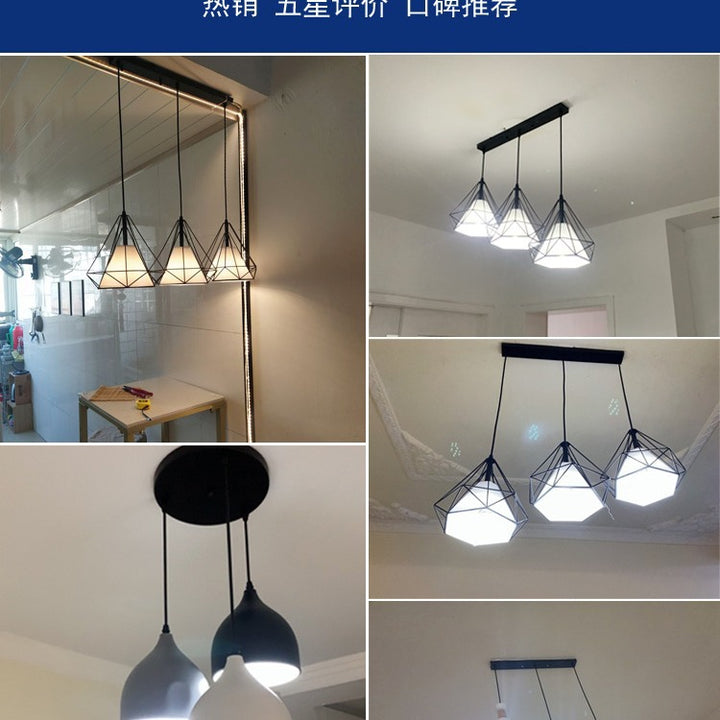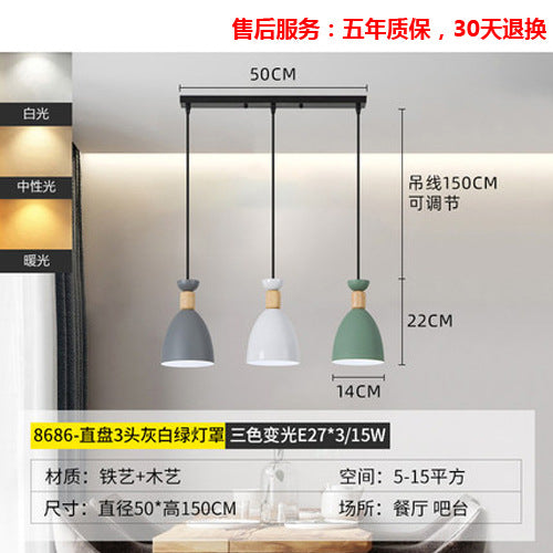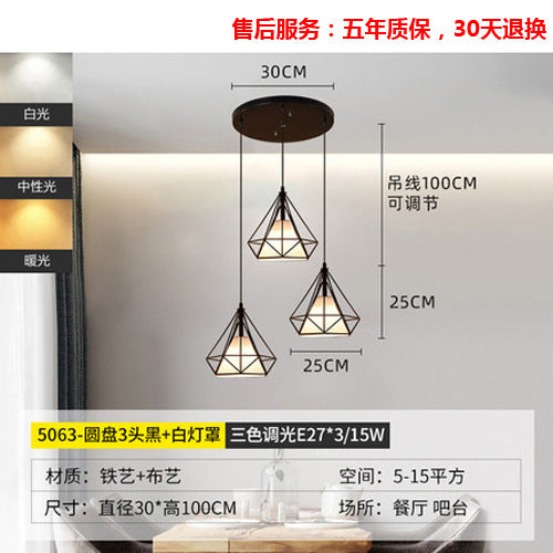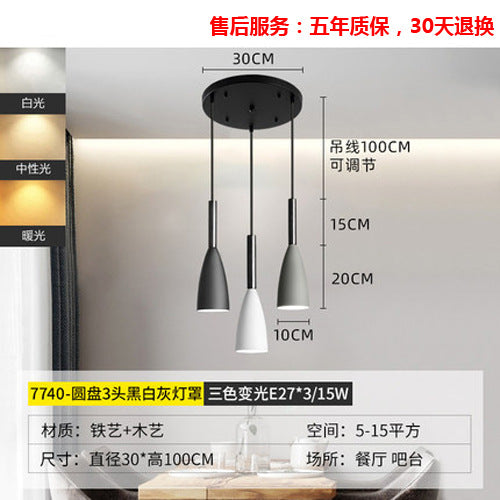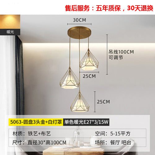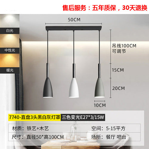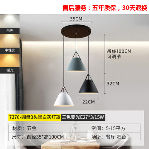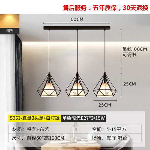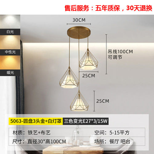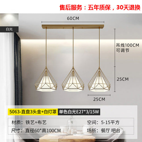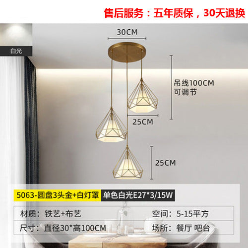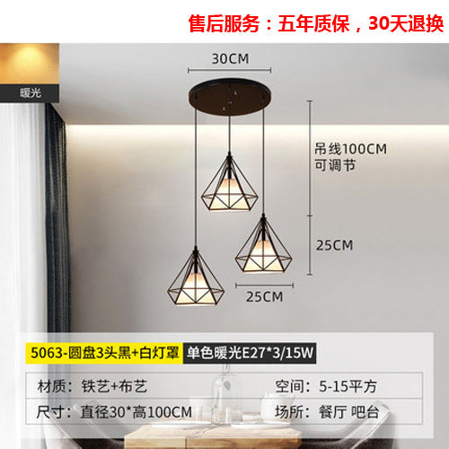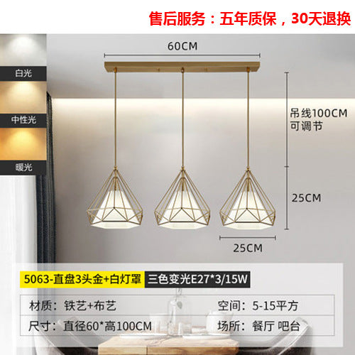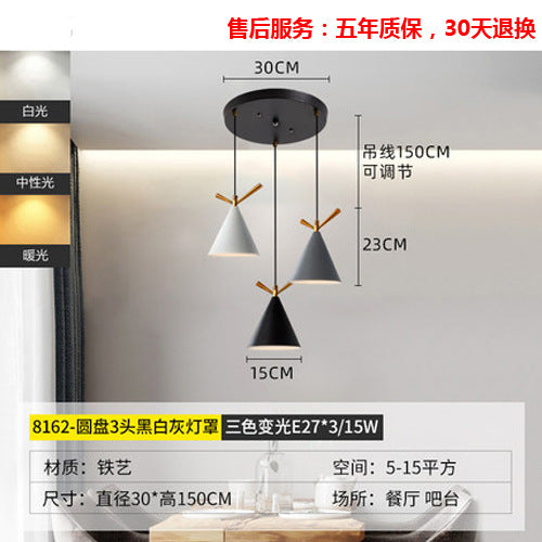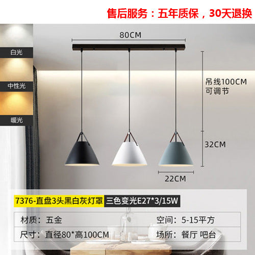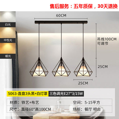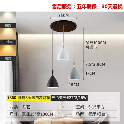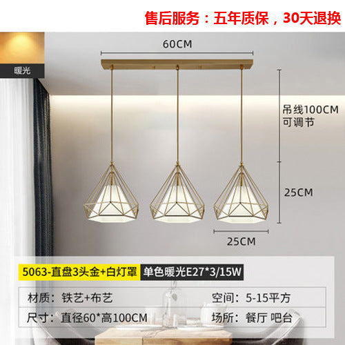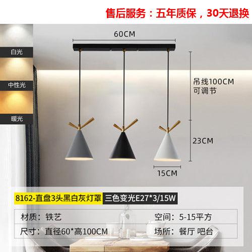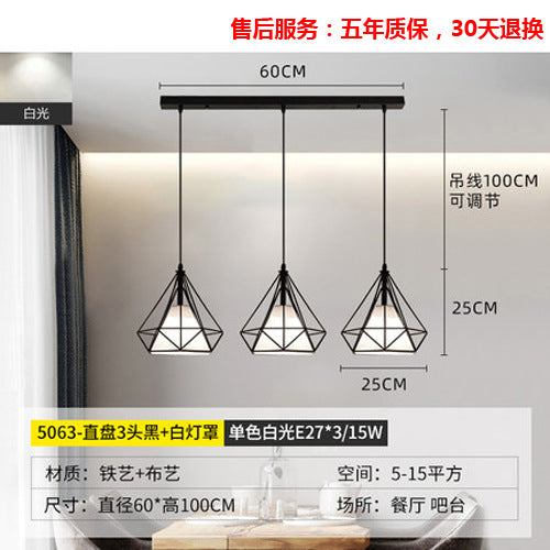 Restaurant chandelier Modern simple three-head dining table light Nordic designer dining table bar creative personality wrought iron chandelier