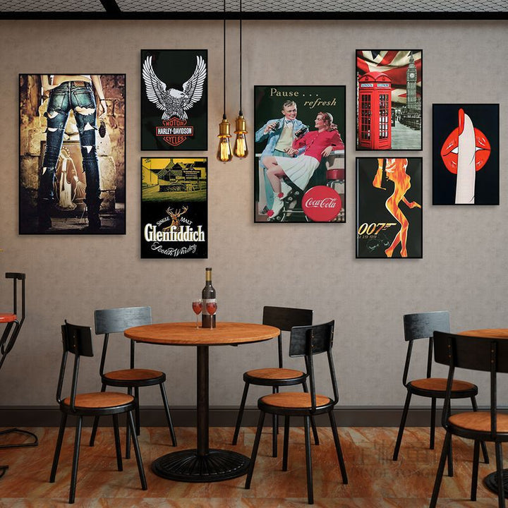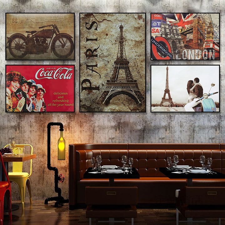 Retro American decorative paintings Iron sheet industrial style nostalgic bar clear bar box old hanging paintings creative iron tower murals