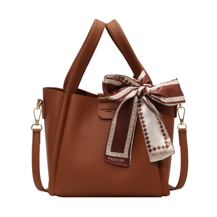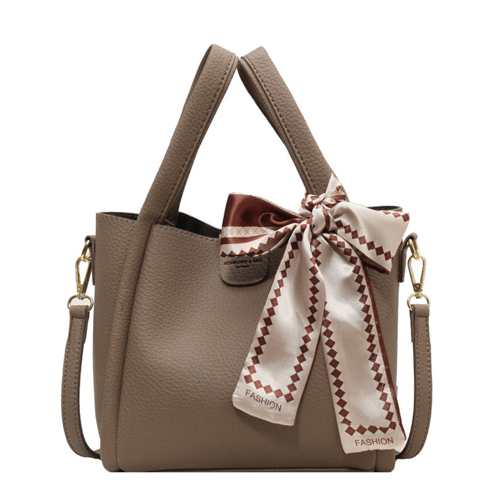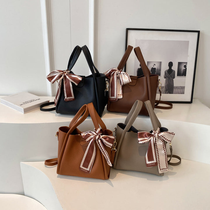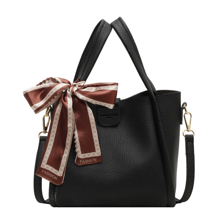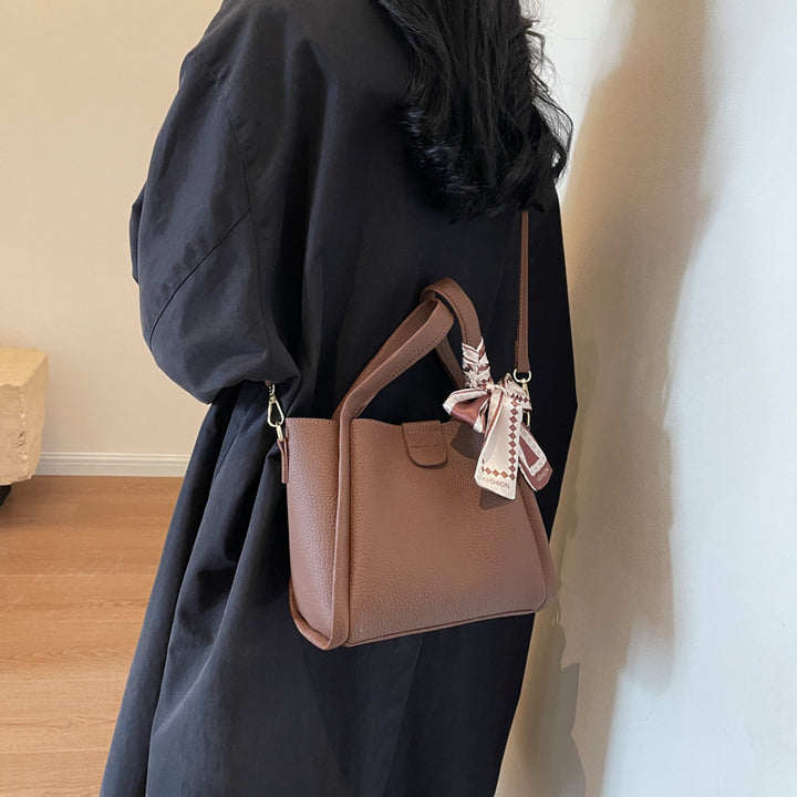 Retro bag women 2025 new Korean version fashionable solid color bag large capacity shoulder bag popular portable bucket bag
