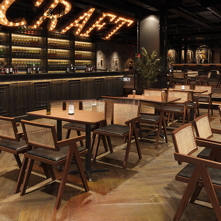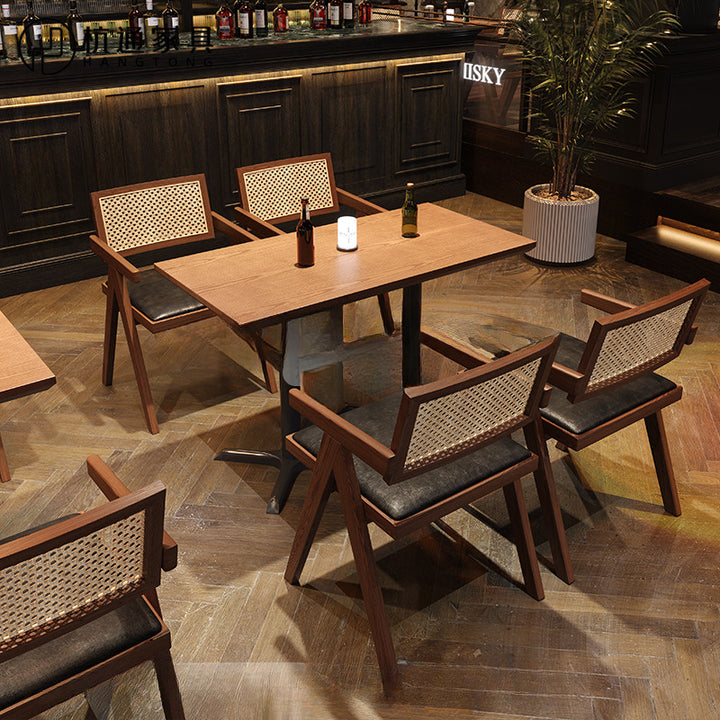 Retro Bar Clear Bar Table and Chair Combination Bistro Cafe Solid Wood Dining Chair Western Restaurant Tea Restaurant Table and Chair