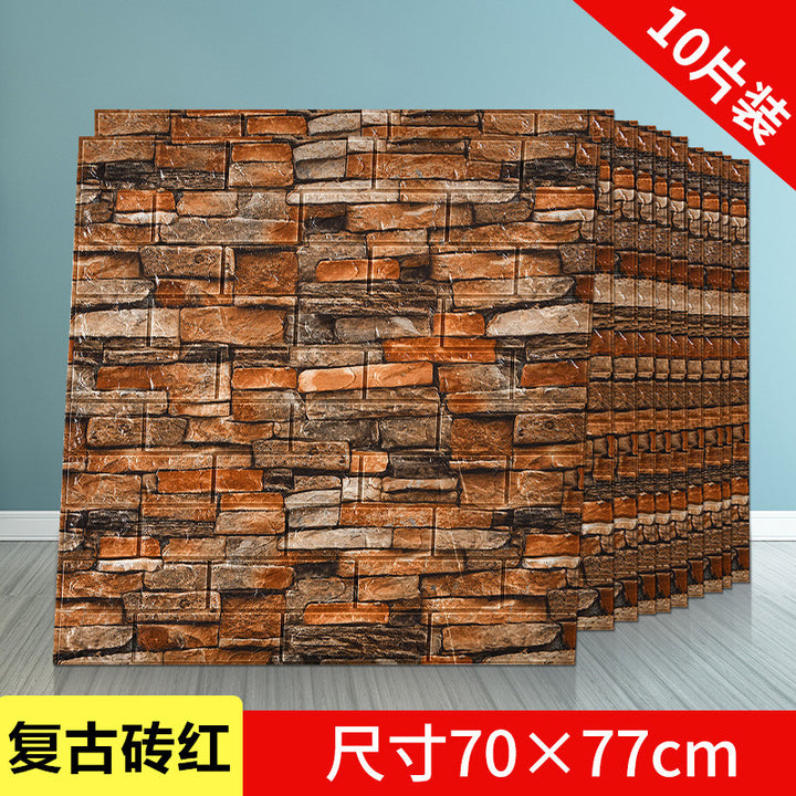 Retro brick pattern 3d three-dimensional foam brick wall sticker self-adhesive wallpaper waterproof and moisture-proof household decoration wallpap...