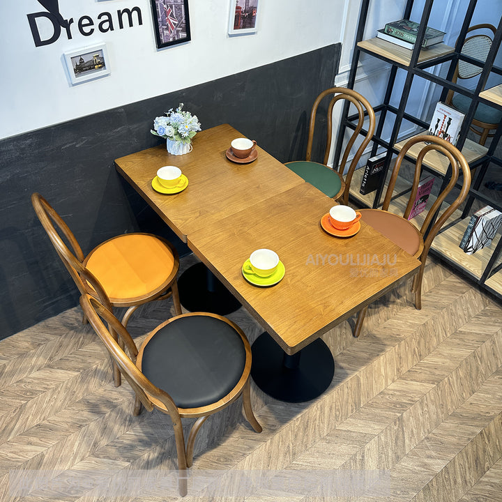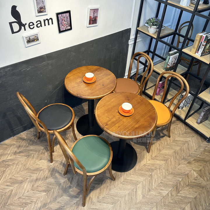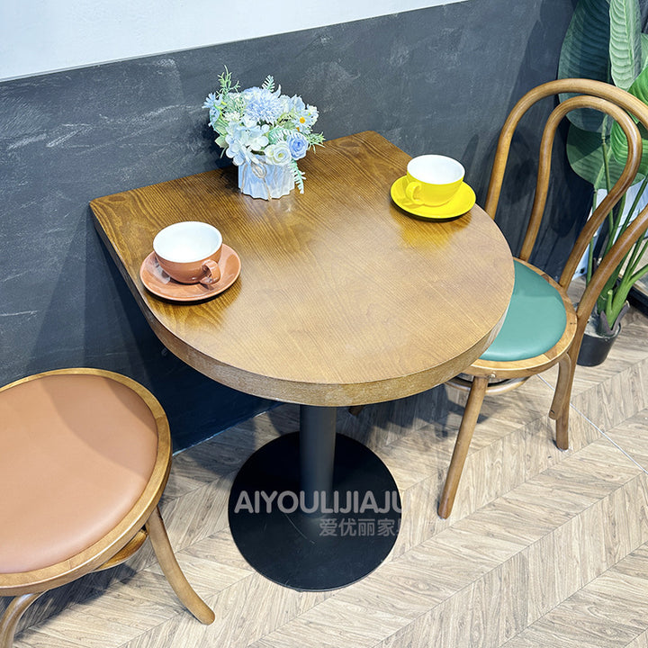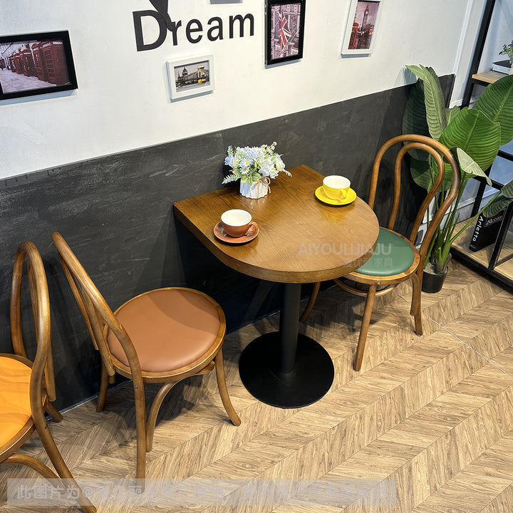 Retro Chinese antique style cafe tables and chairs Catering commercial baking hall Dessert milk tea shop Semi-round table Western restaurant Solid ...