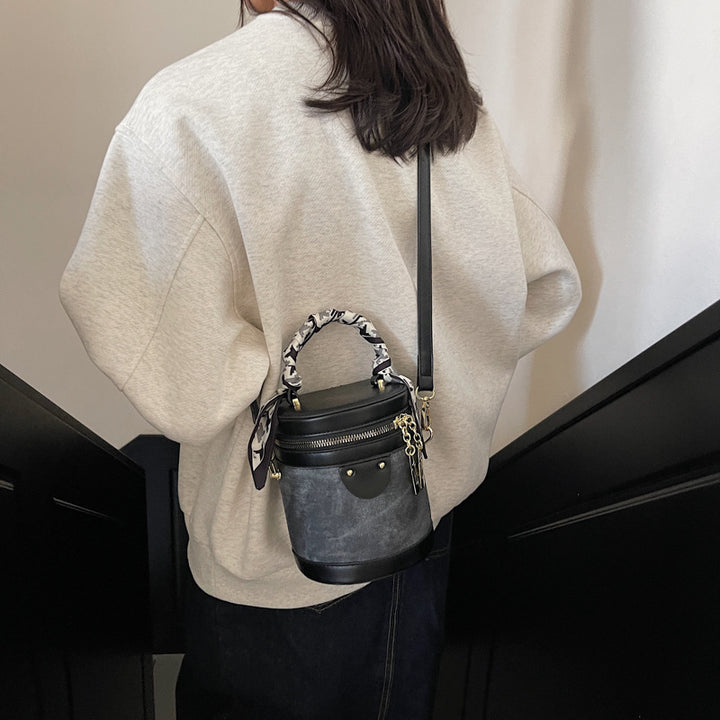 Retro contrasting color bucket bag women's 2025 new niche design portable cylinder bag versatile texture shoulder messenger bag