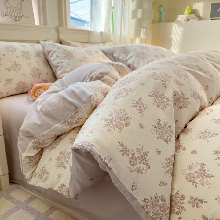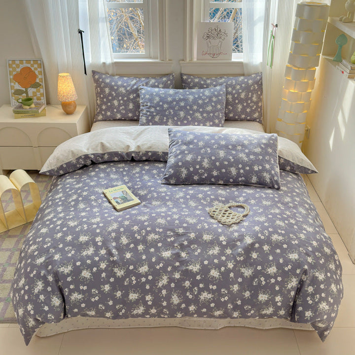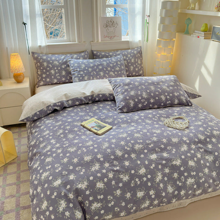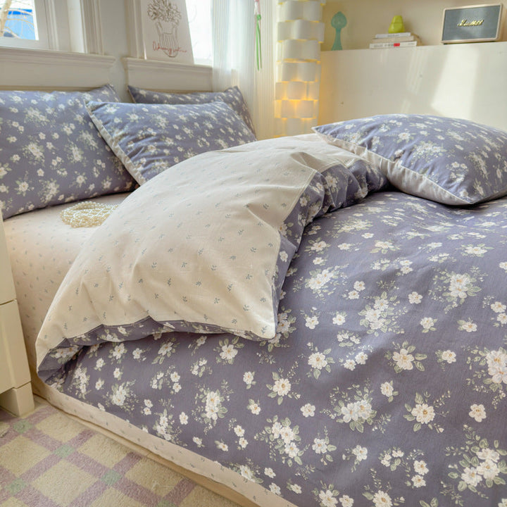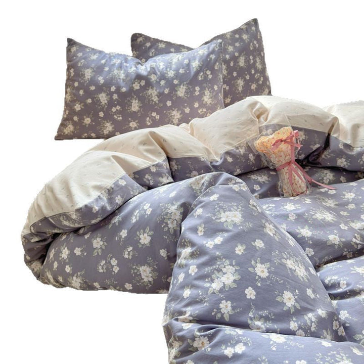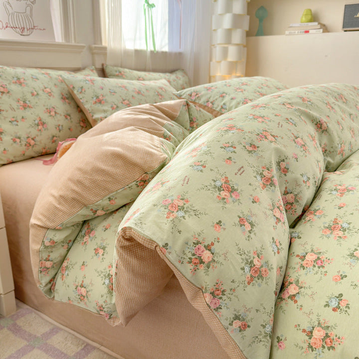 Retro floral pure cotton bed four-piece cotton 2025 new pastoral bedding quilt cover dormitory bed sheet three-piece set