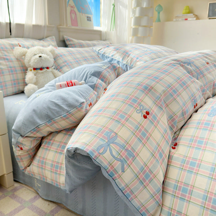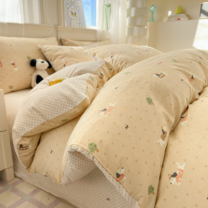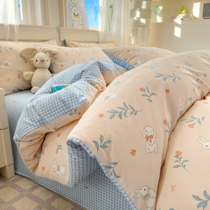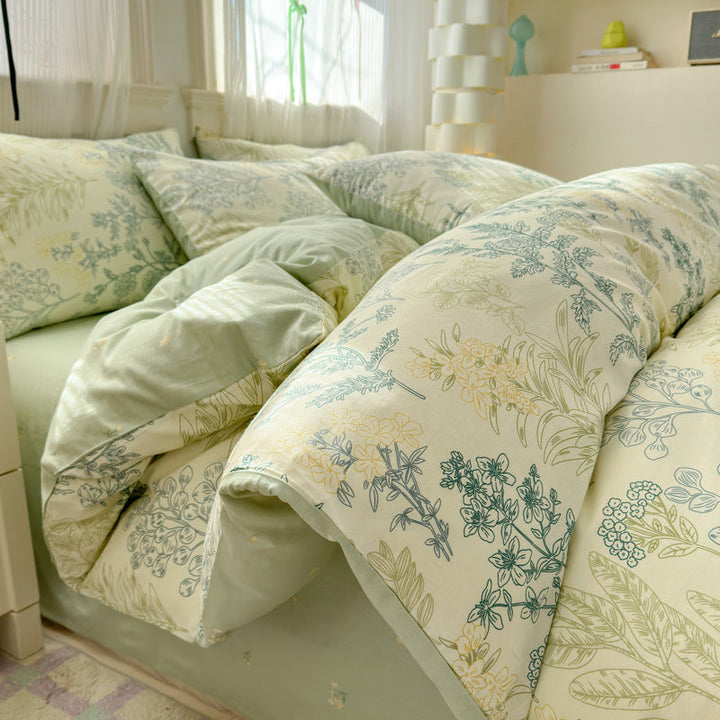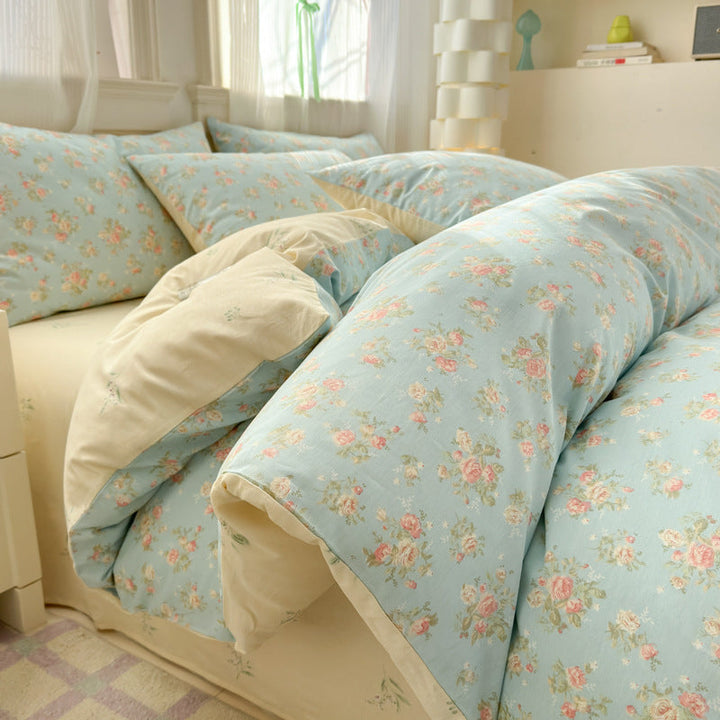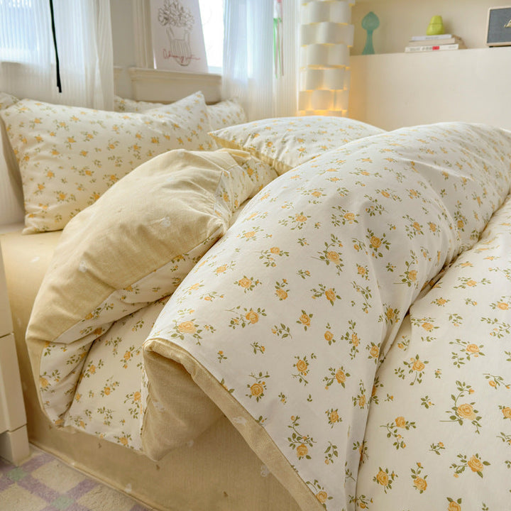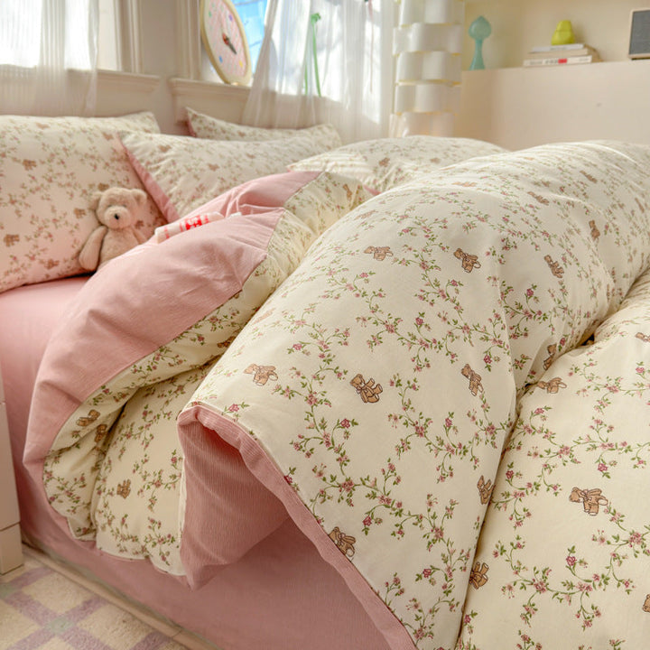 Retro floral pure cotton bed four-piece cotton 2025 new pastoral bedding quilt cover dormitory bed sheet three-piece set