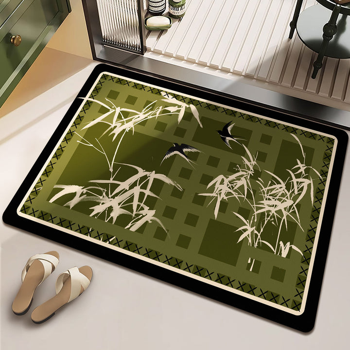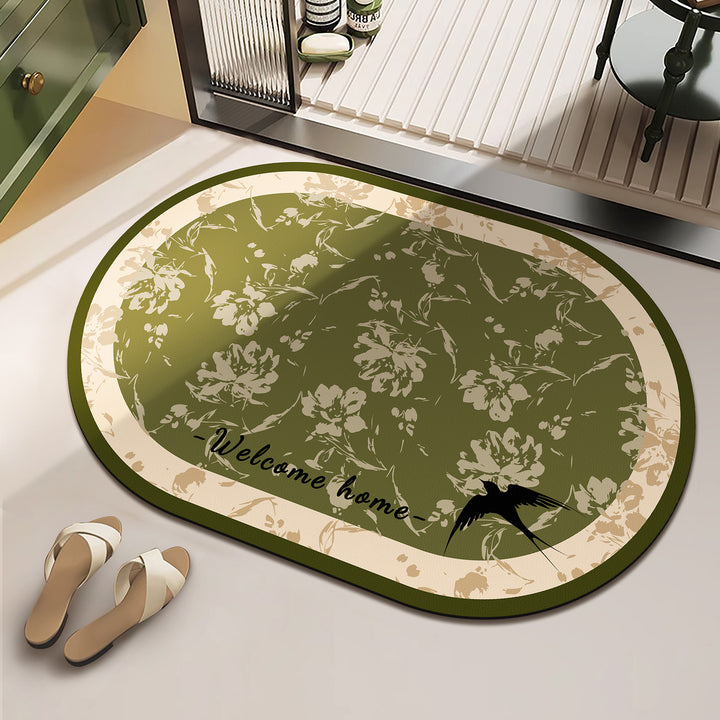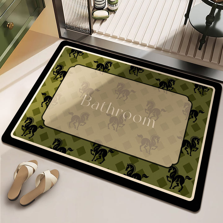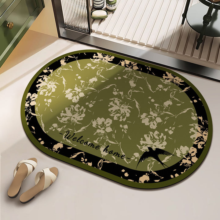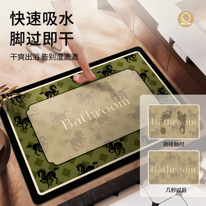 Retro green bathroom floor mat soft diatom mud absorbent non-slip foot mat toilet quick drying household toilet mat